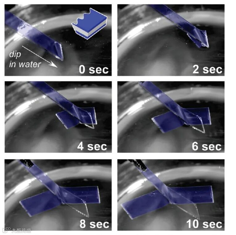 ②在PLLA上方贴PDMS之后在边缘处滴一滴水,水滴浸入PLLA与SiO2界面并使得PDMS/PLLA/MoS2从SiO2/Si上剥离,随后转移至目标基底;