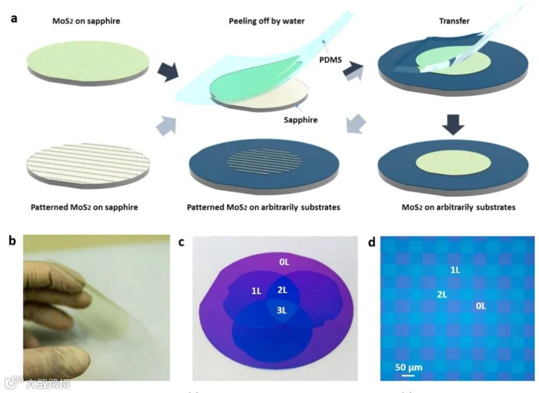 图5 MoS2薄膜转移至任何衬底。