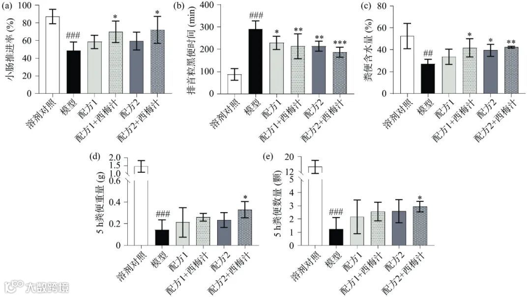 图 2 复配益生元和西梅汁对小鼠便秘相关指标的影响