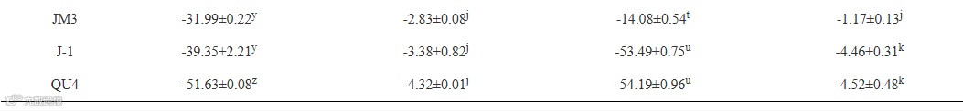 注:同列不同小写字母表示数据间有显著差异(P<0.05),表2同。