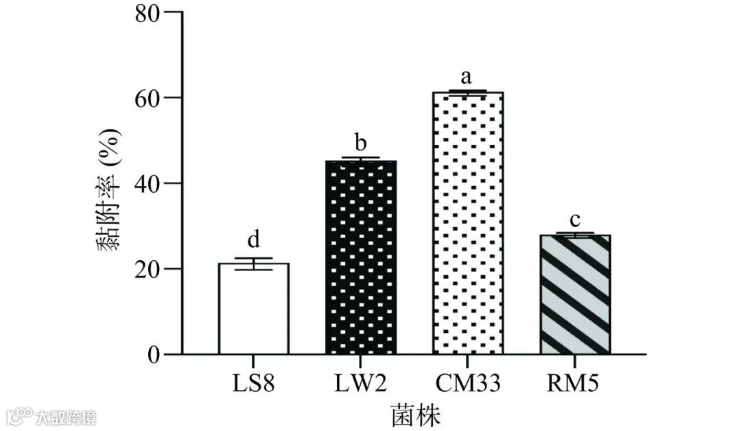 Figure 3. Differences in cell adhesion ability among four strains of lactic acid bacteria