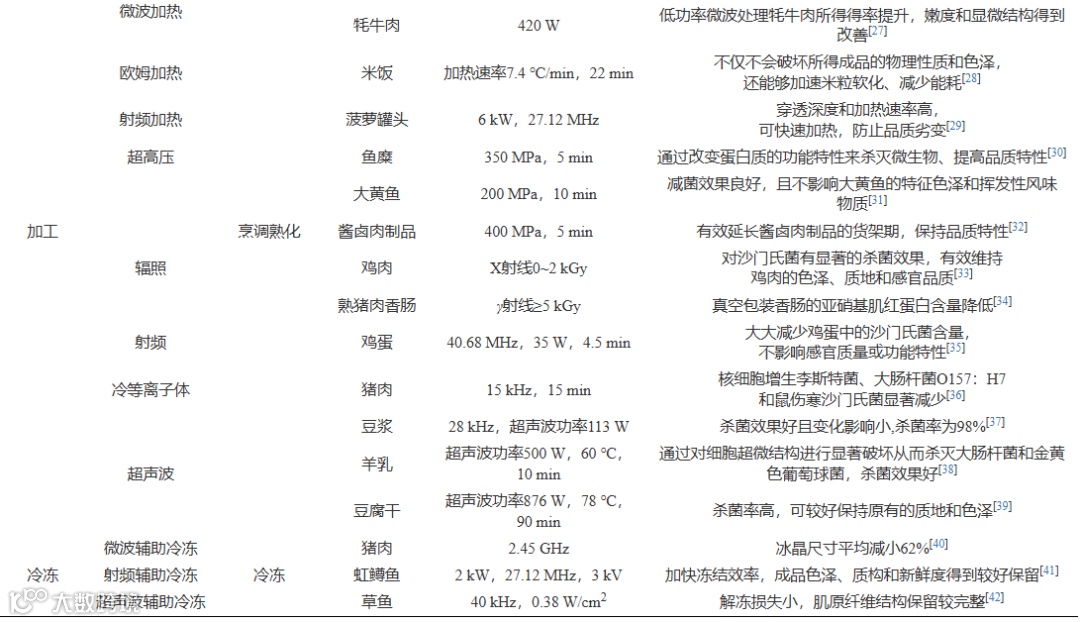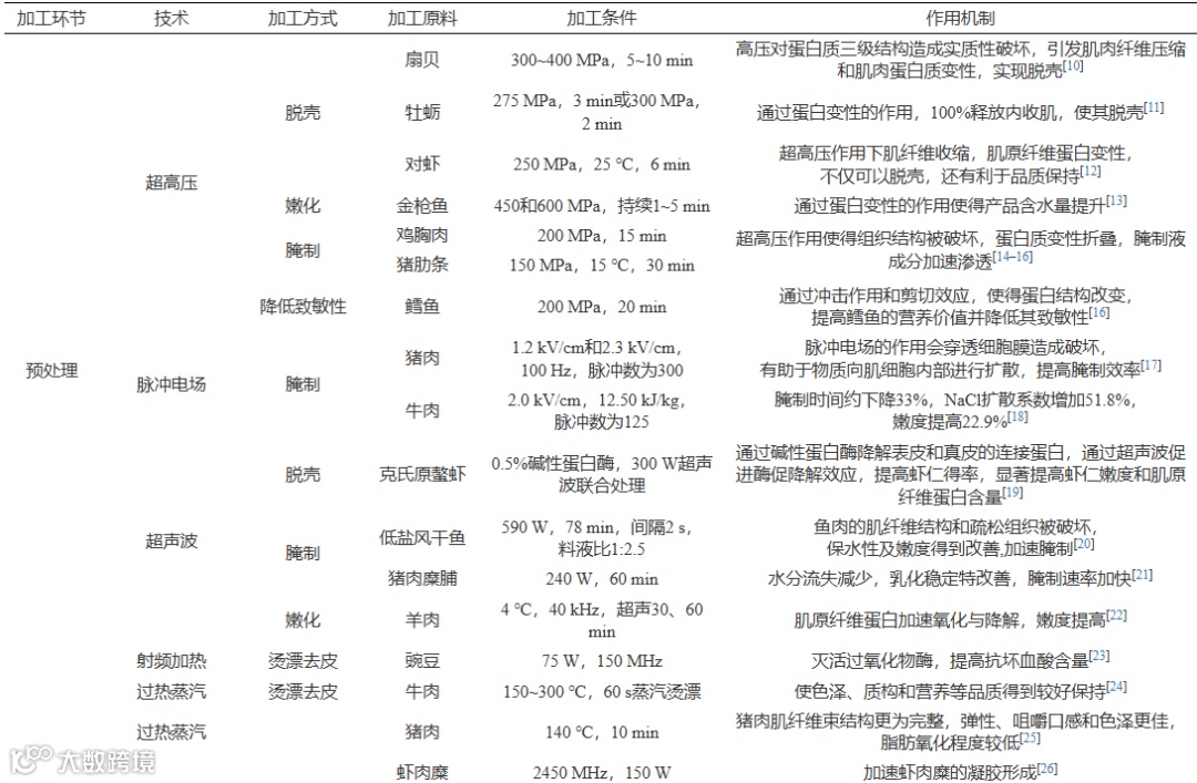 Table 1. Application and mechanism of novel processing technology