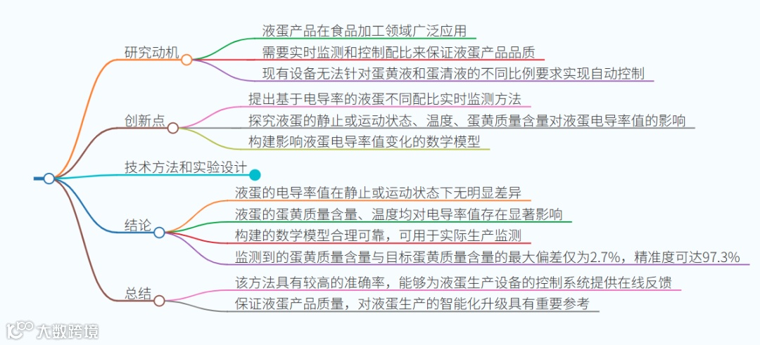 东北农业大学工程学院、东北农业大学食品学院迟媛,黄子龙,贾宇豪,林佳宝,迟玉杰等人介绍了中国作为全球最大鸡蛋生产国和消费国的背景,液蛋产品的定义、种类及其在食品加工中的应用需求。重点分析了当前液蛋加工设备在自动控制配比方面的不足,强调了实时在线监测对提升生产智能化的重要性。电导率检测技术作为一种成熟手段,在食品领域已有应用基础,但现有研究多集中于液蛋新鲜度离线检测和设备清洗监控,尚未实现动态在线配比监测。本章提出基于电导率技术开发实时监测方法,探究运动状态、蛋黄含量与温度对电导率的影响,通过建立数学模型和搭建实验系统,为液蛋生产智能化提供理论支持。
