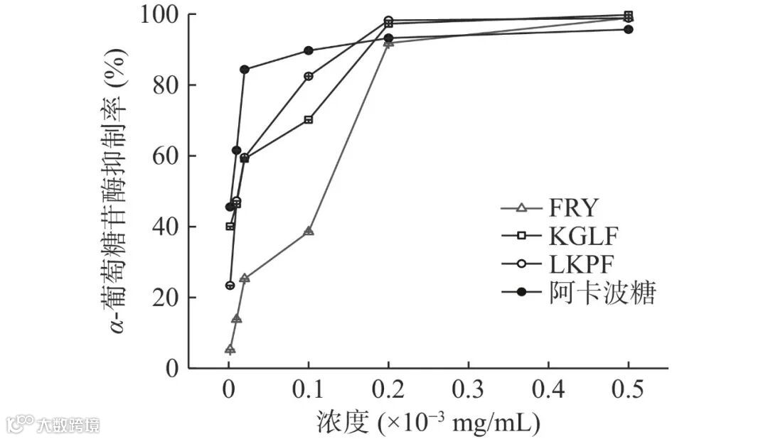 图 8 FRY、KGLF、LKPF和阿卡波糖的α-葡萄糖苷酶抑制率