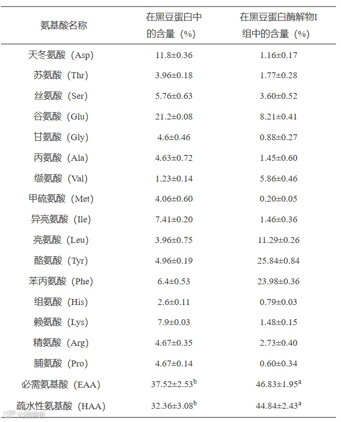 表 4 黑豆蛋白及Ⅰ组的氨基酸含量