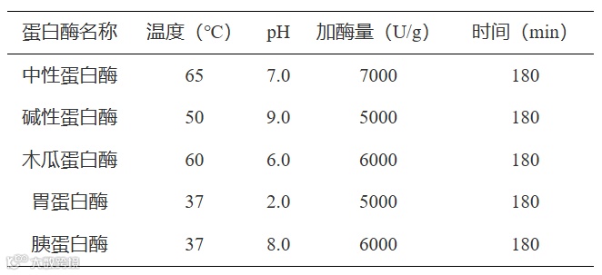 表 1 五种蛋白酶水解黑豆蛋白的最适水解条件