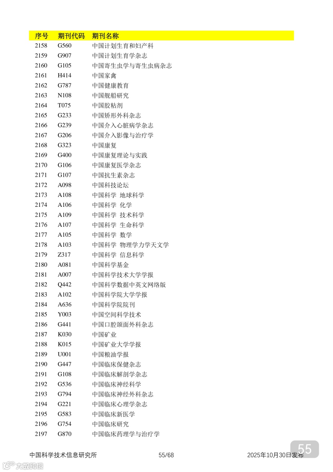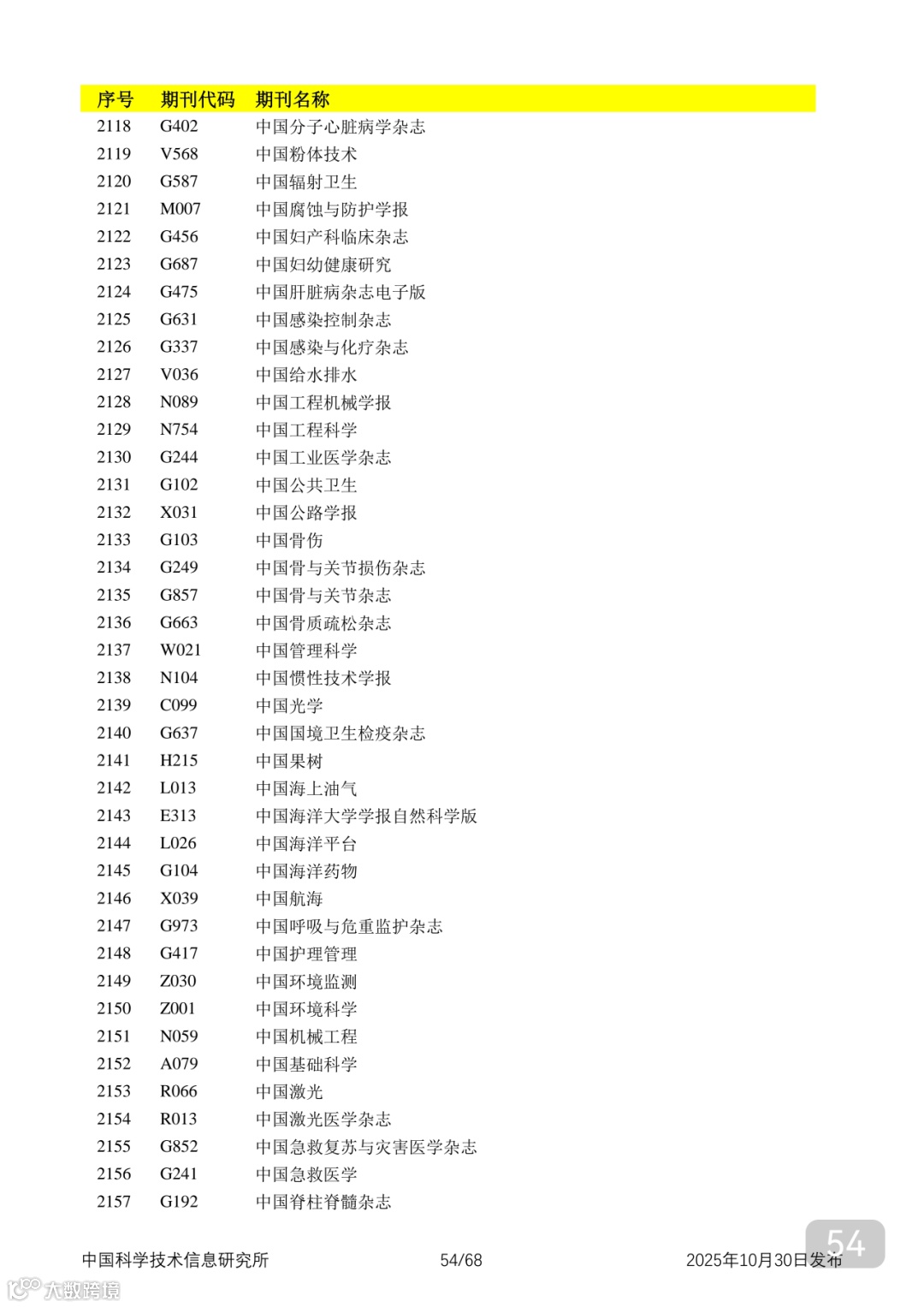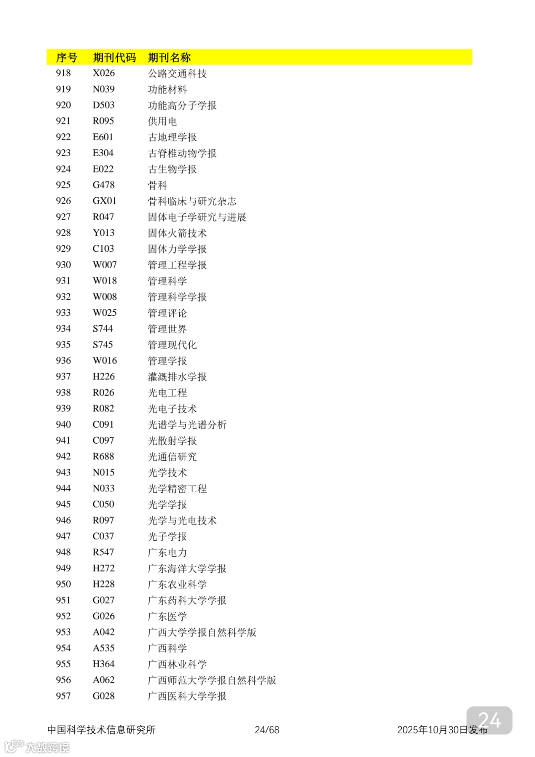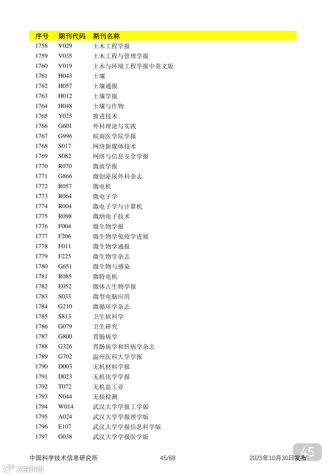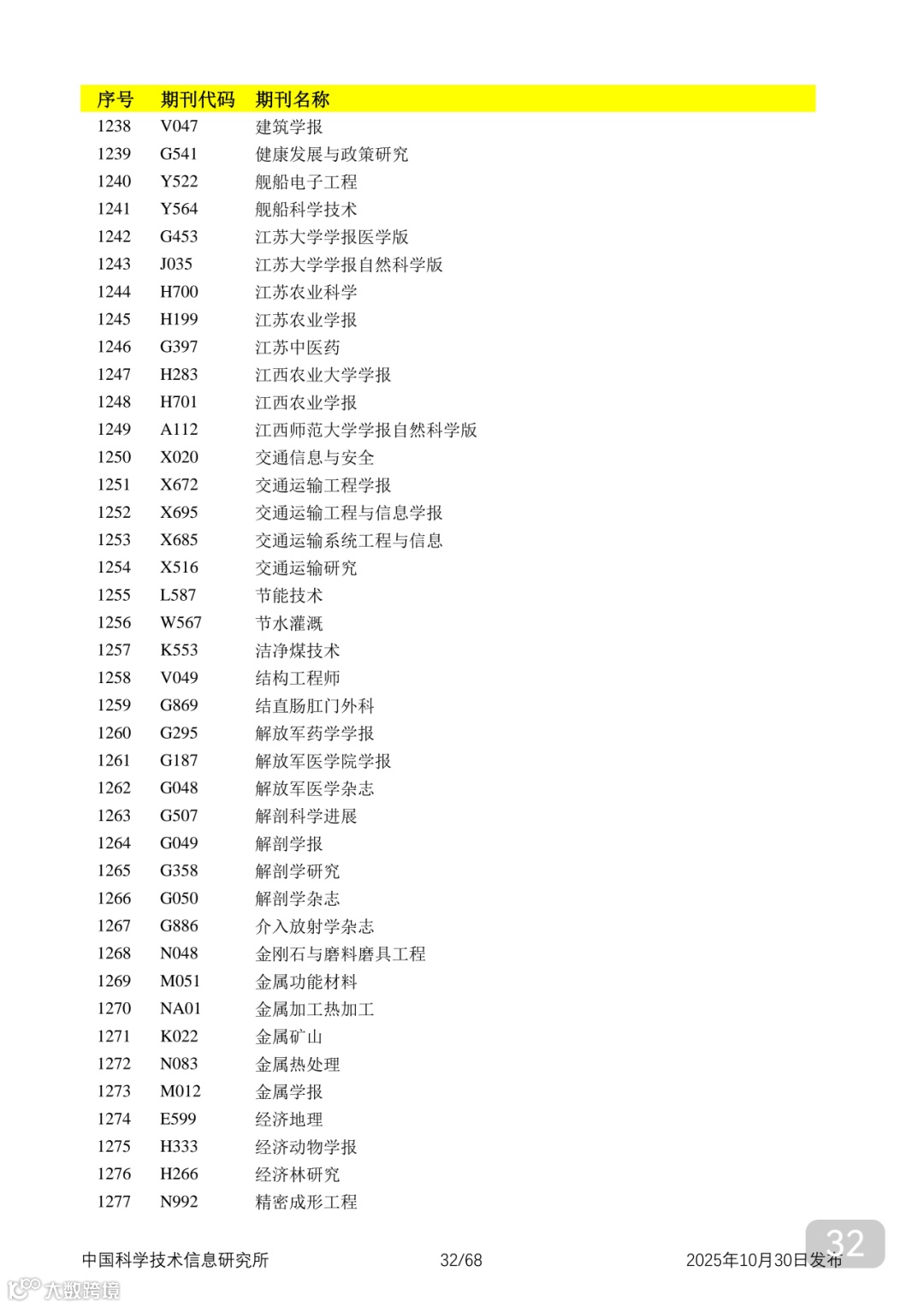 附2025年中国科技核心期刊目录,其中食品领域期刊以红线框出(人工整理,如有遗漏,敬请谅解)。