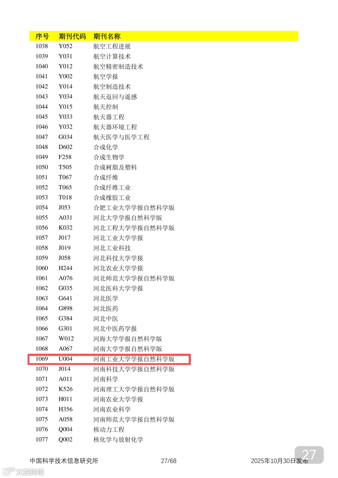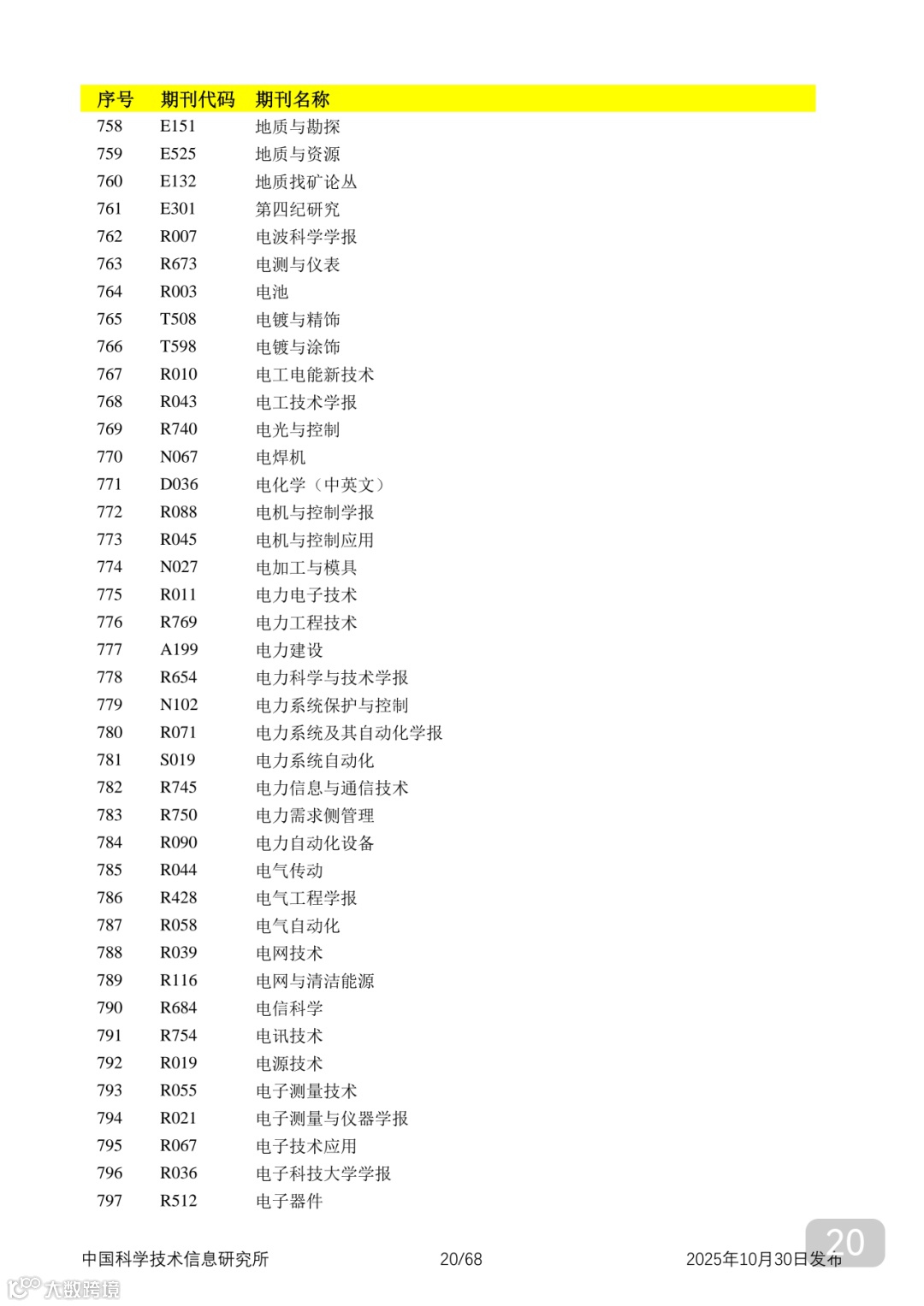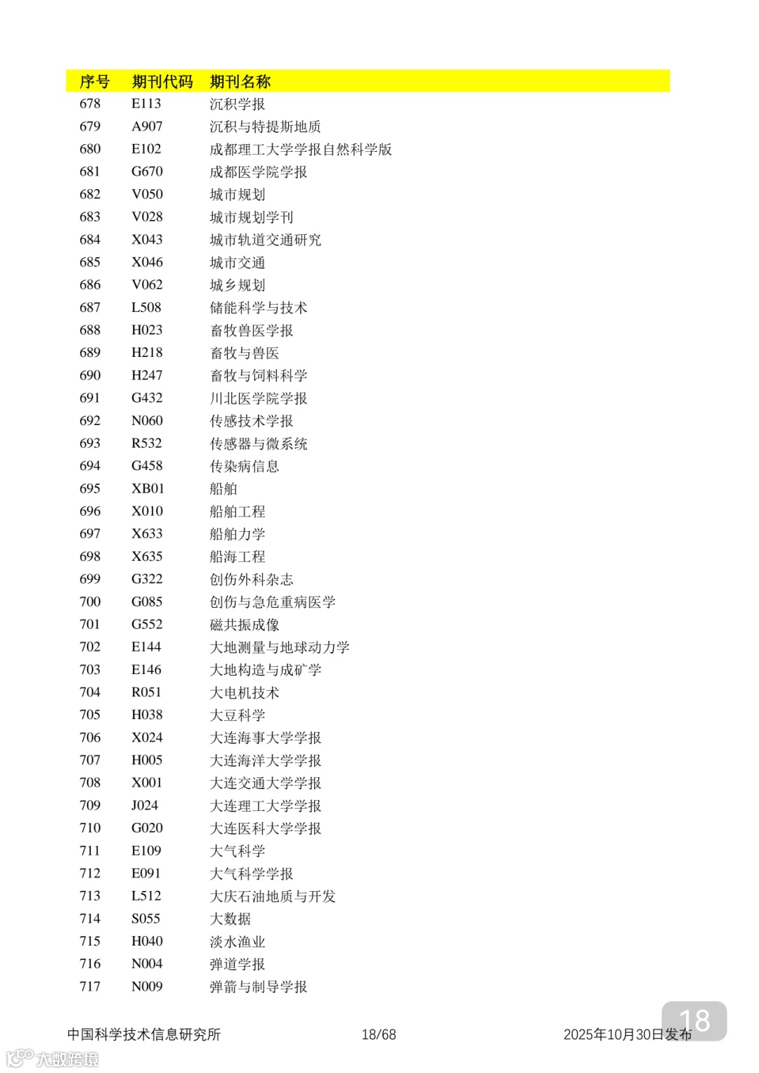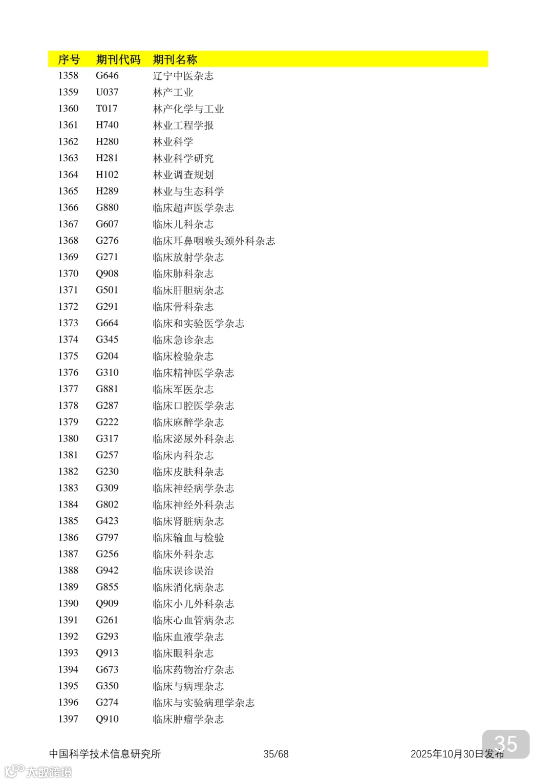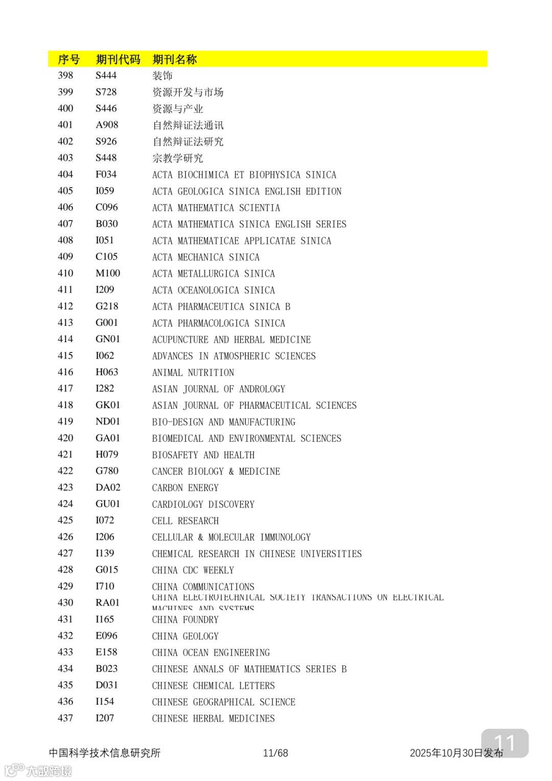 附2025年中国科技核心期刊目录,其中食品领域期刊以红线框出(人工整理,如有遗漏,敬请谅解)。