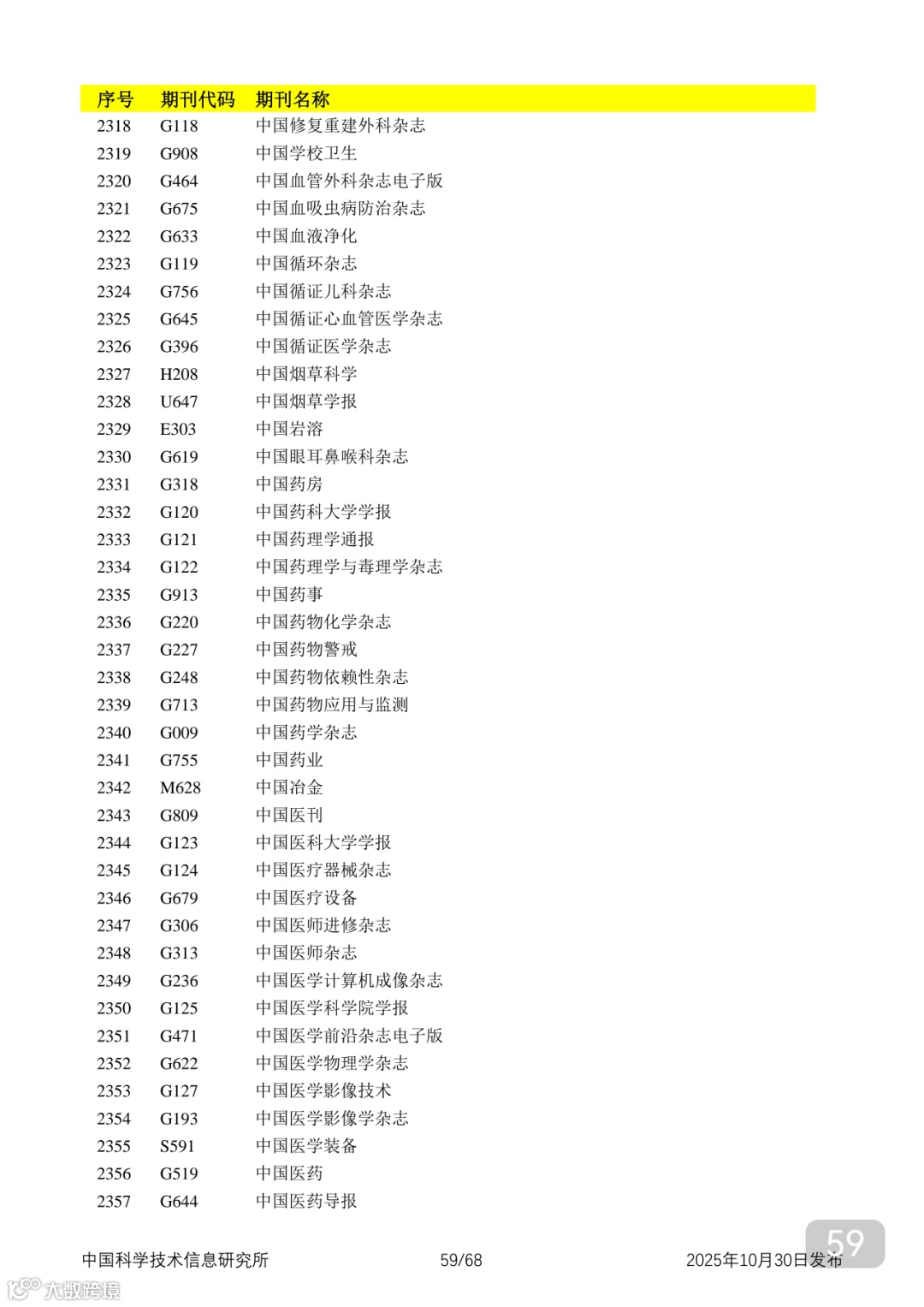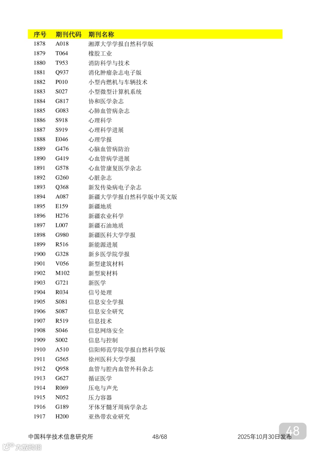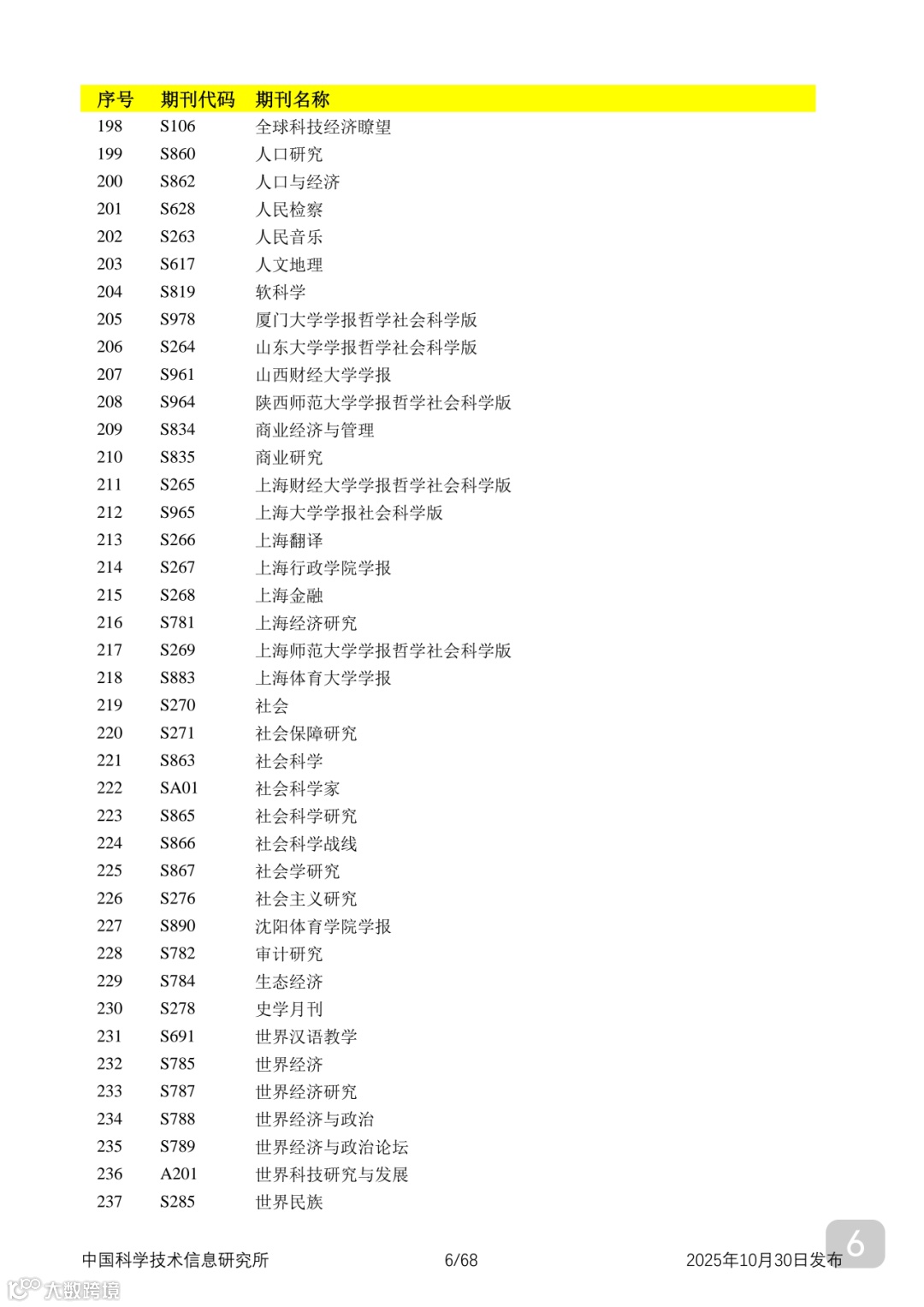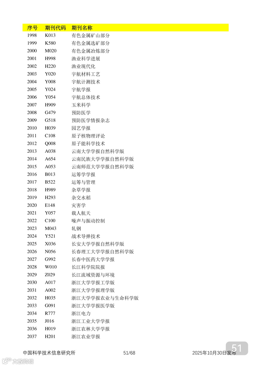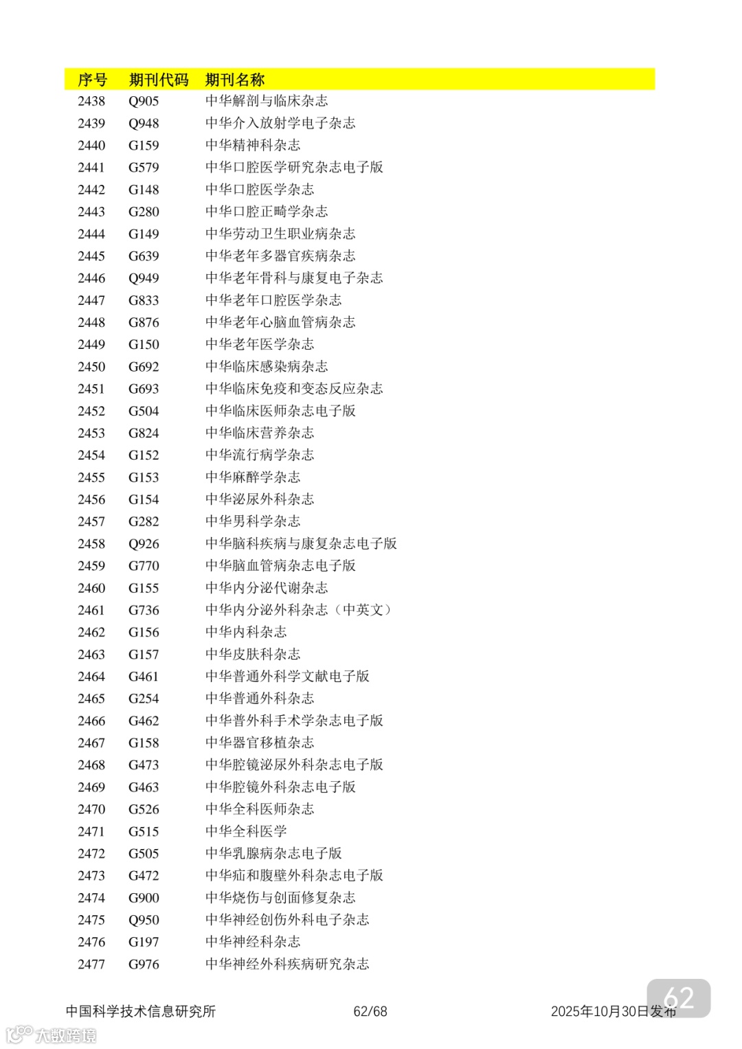 附2025年中国科技核心期刊目录,其中食品领域期刊以红线框出(人工整理,如有遗漏,敬请谅解)。