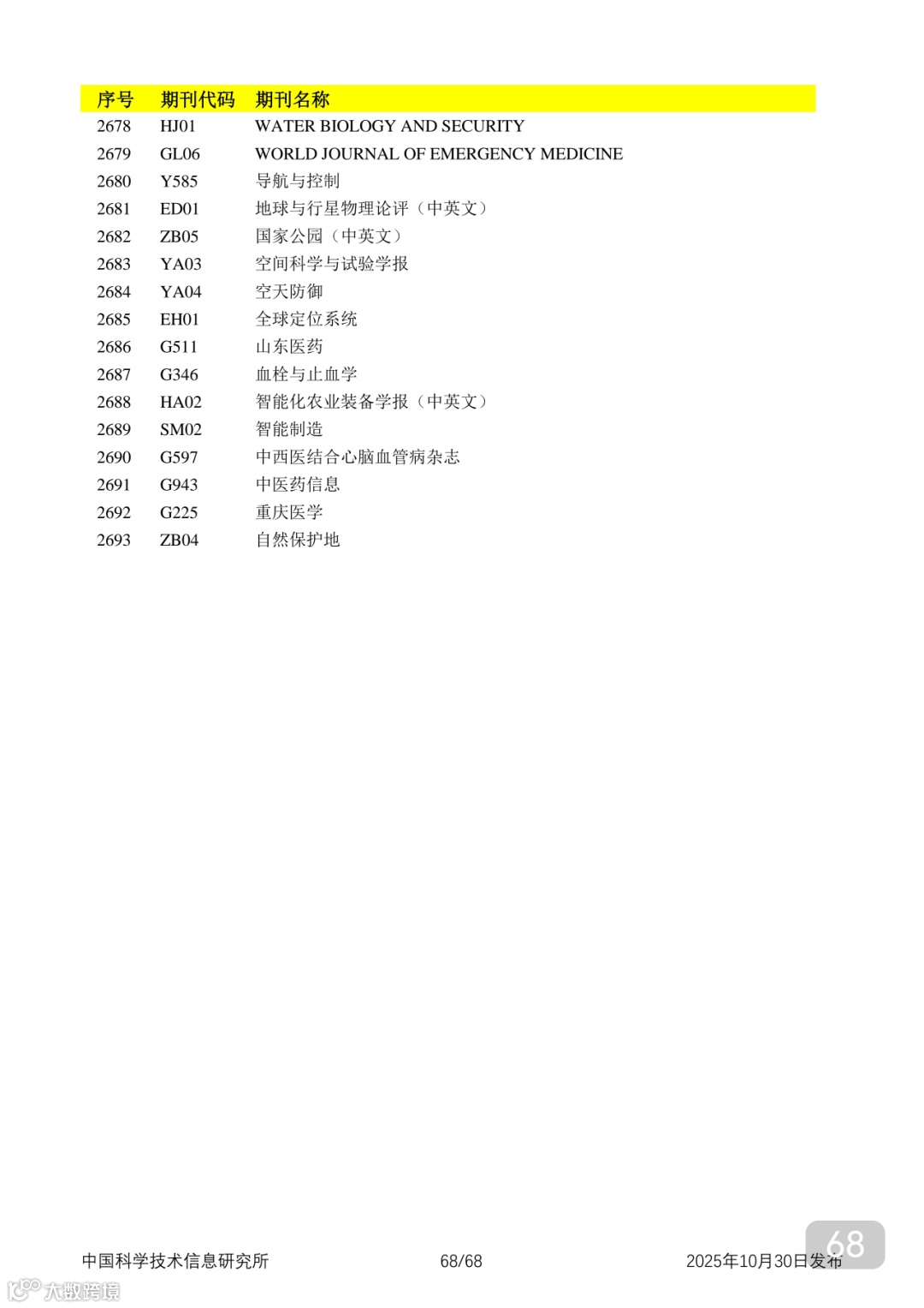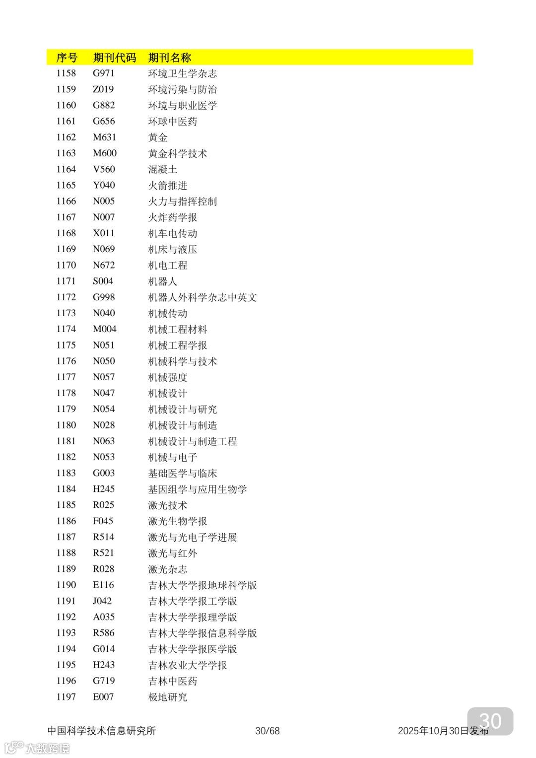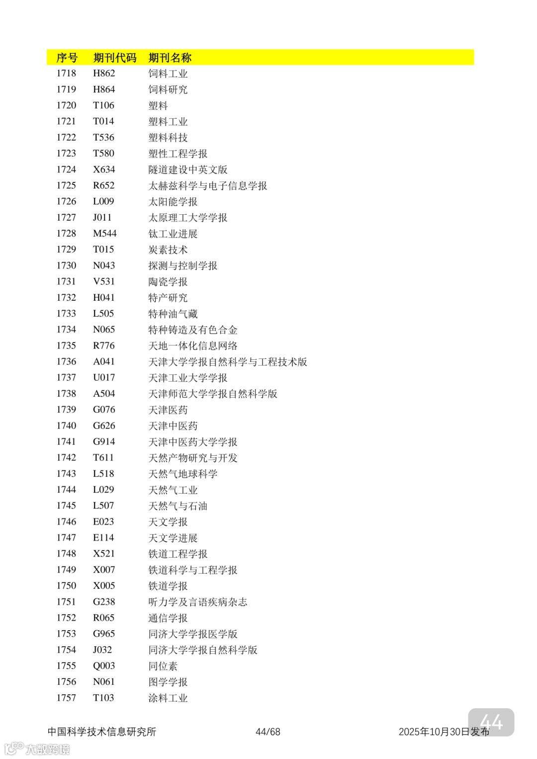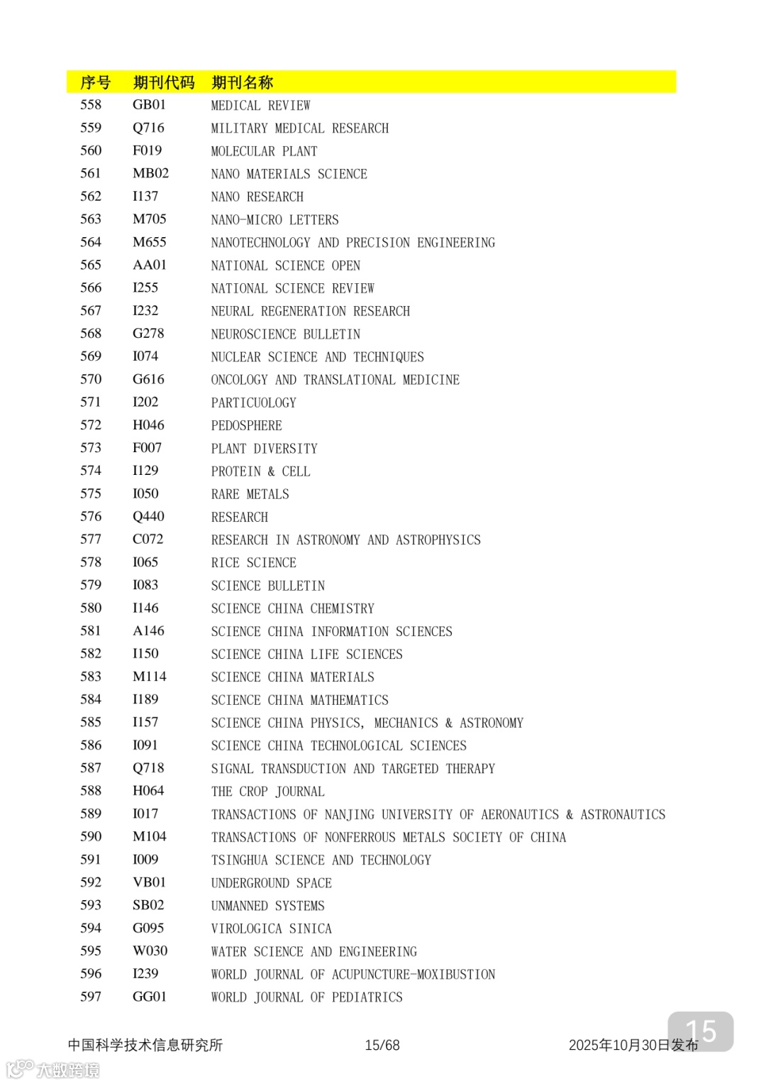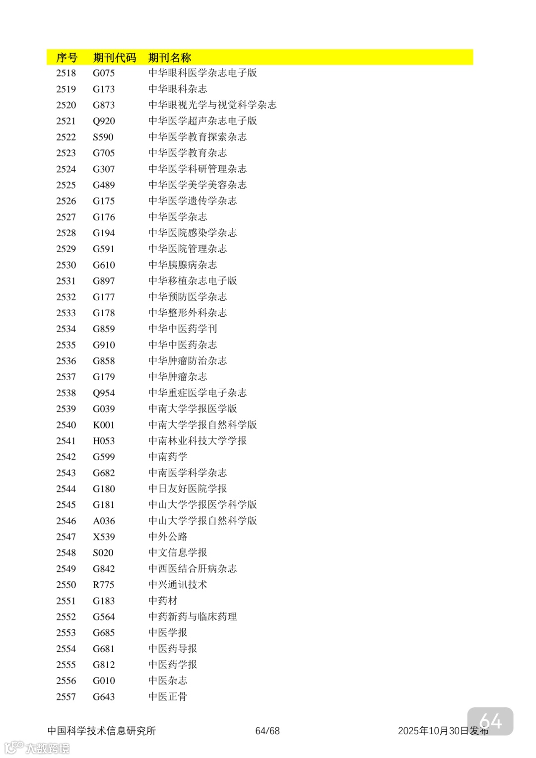 附2025年中国科技核心期刊目录,其中食品领域期刊以红线框出(人工整理,如有遗漏,敬请谅解)。