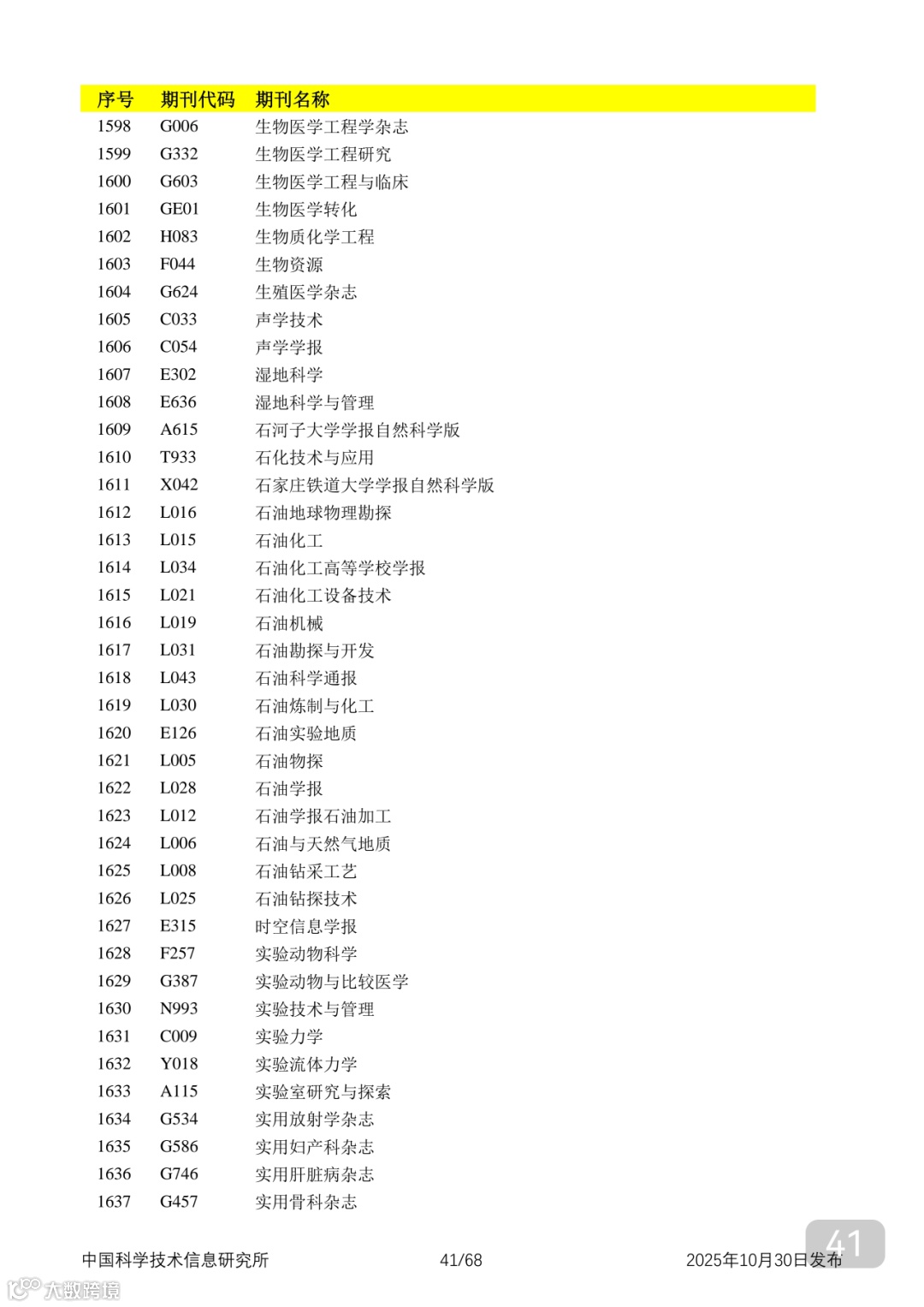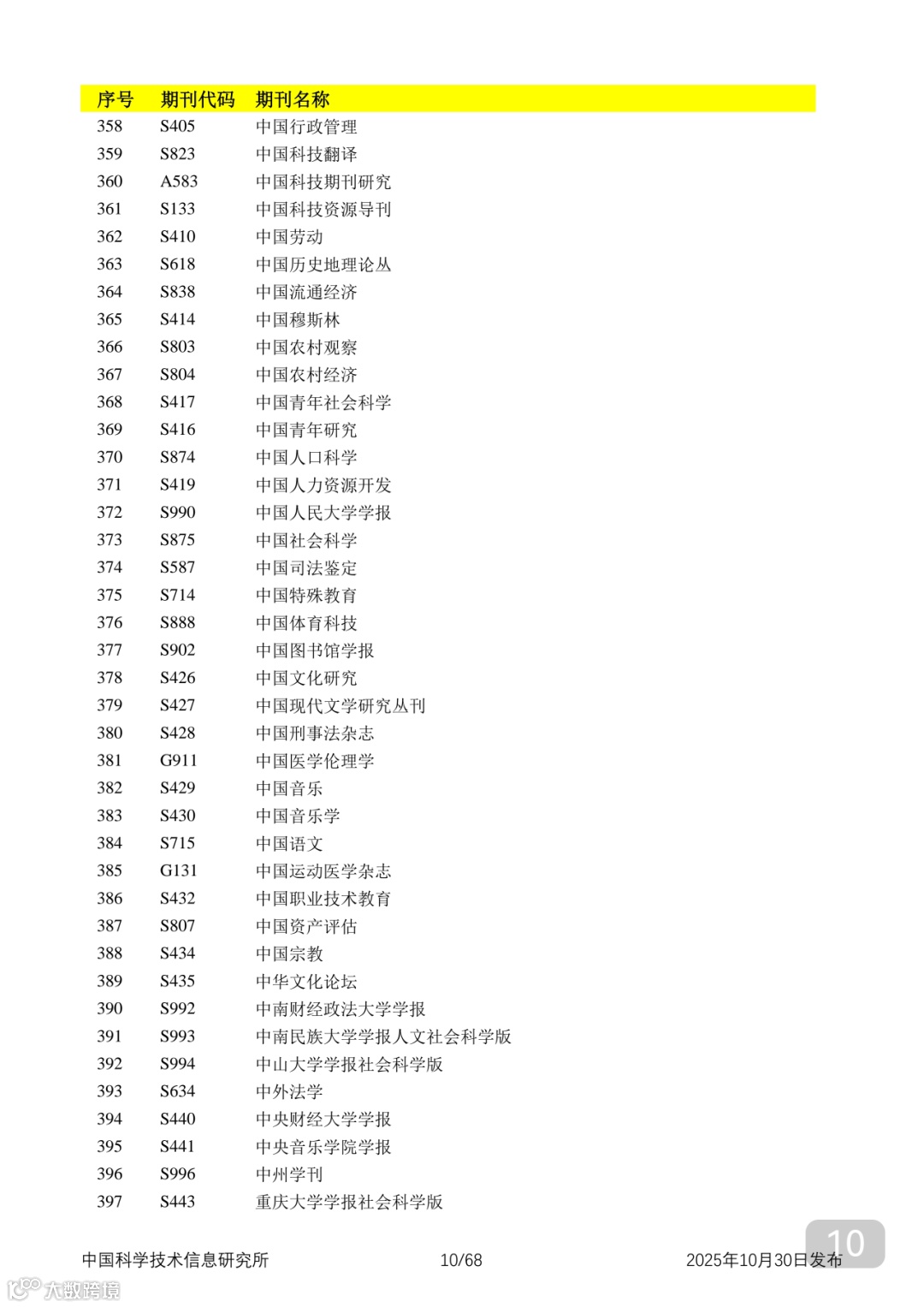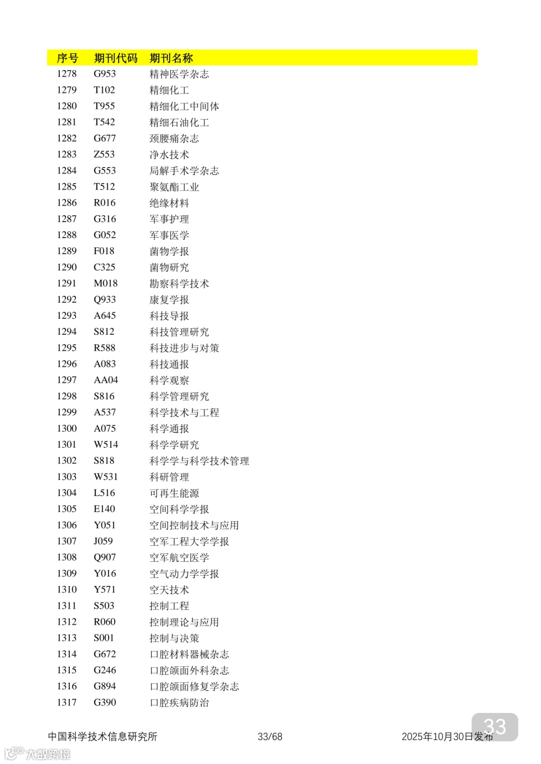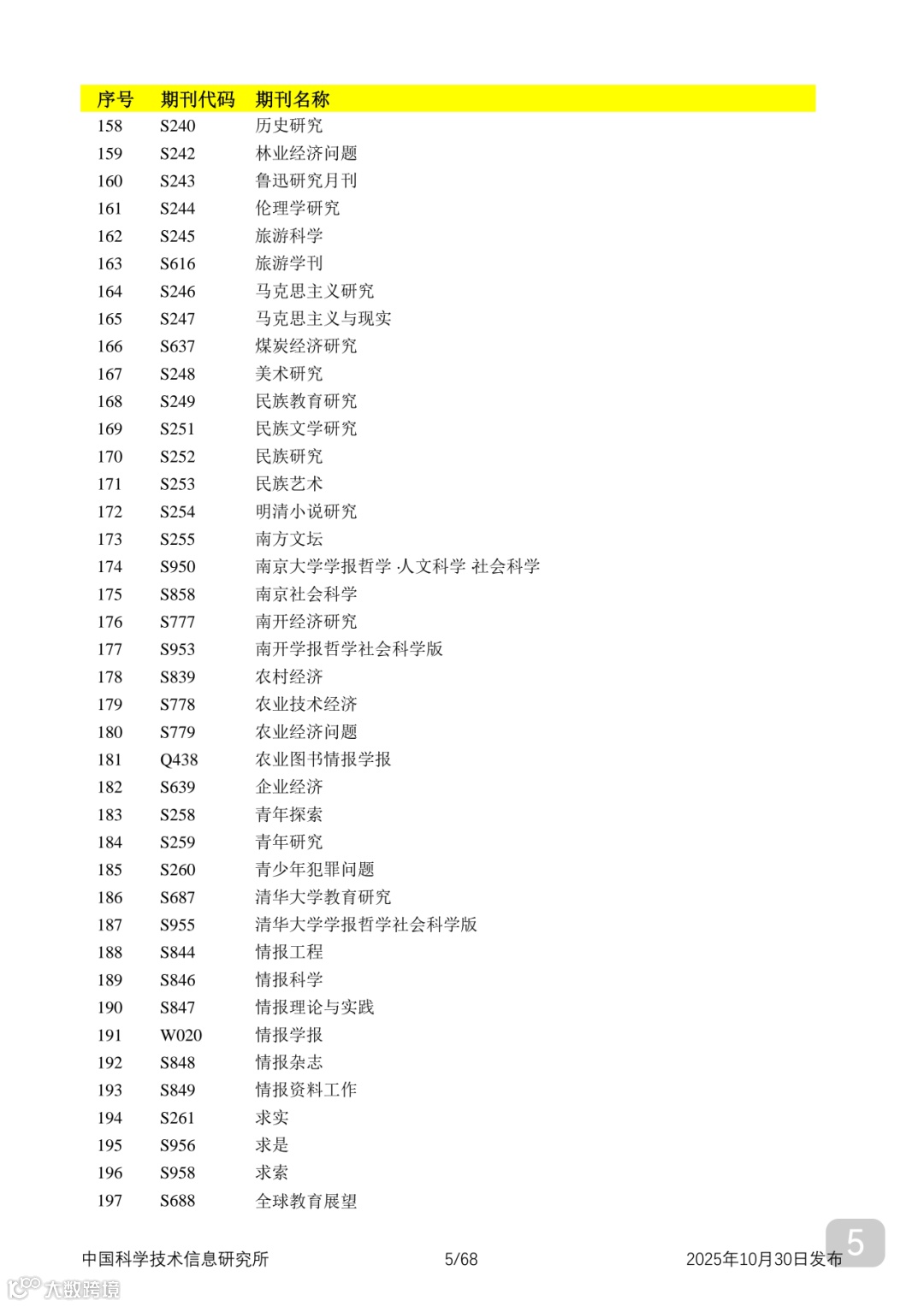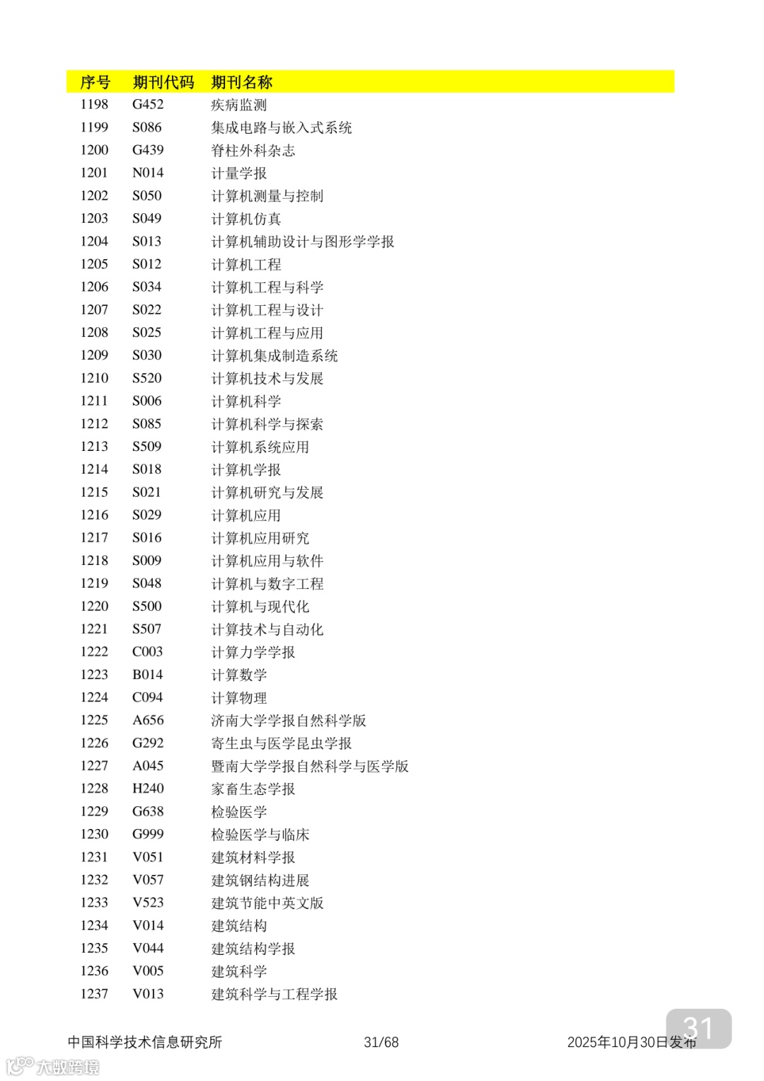 附2025年中国科技核心期刊目录,其中食品领域期刊以红线框出(人工整理,如有遗漏,敬请谅解)。