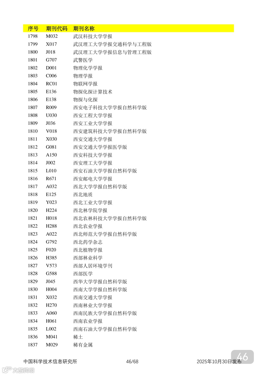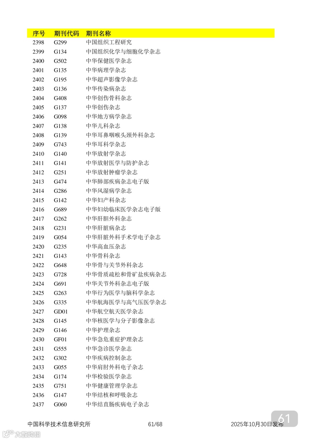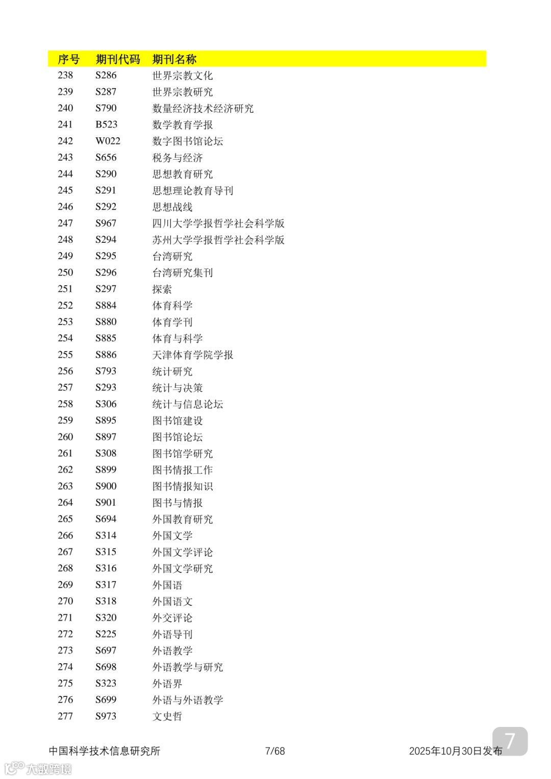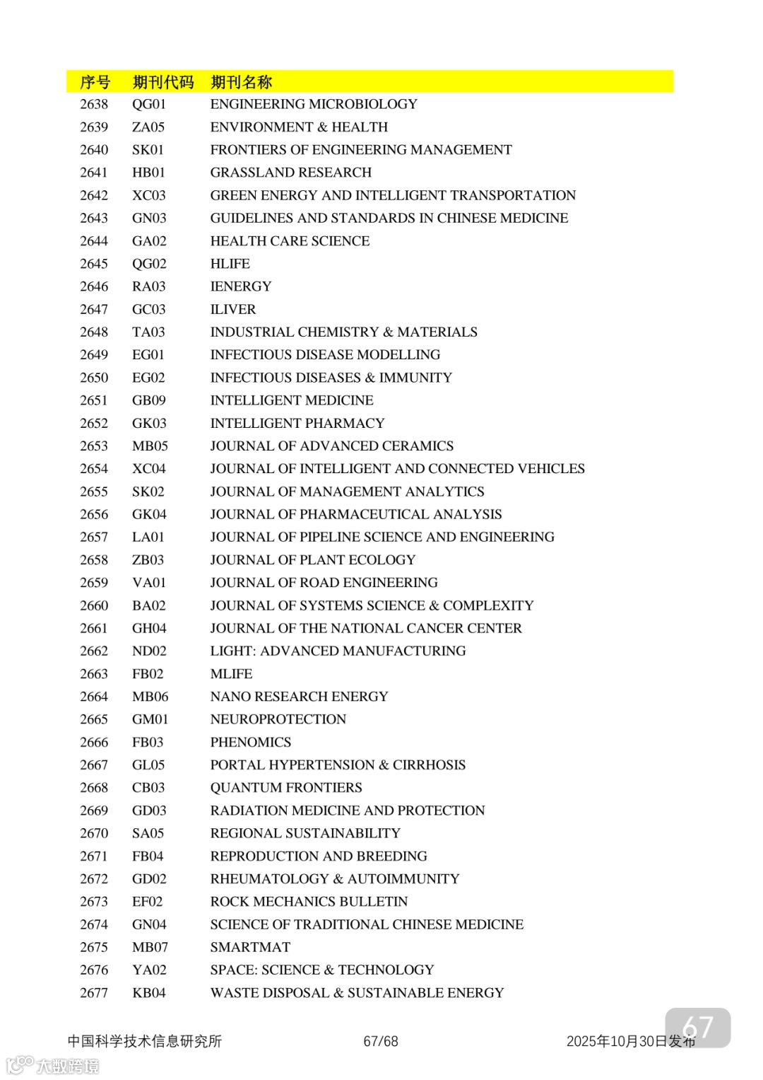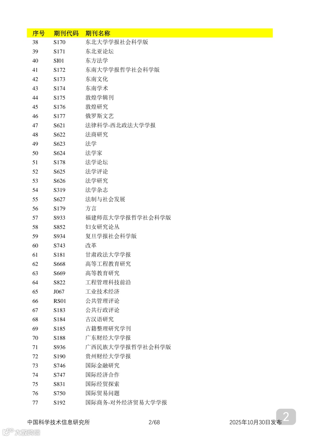 附2025年中国科技核心期刊目录,其中食品领域期刊以红线框出(人工整理,如有遗漏,敬请谅解)。