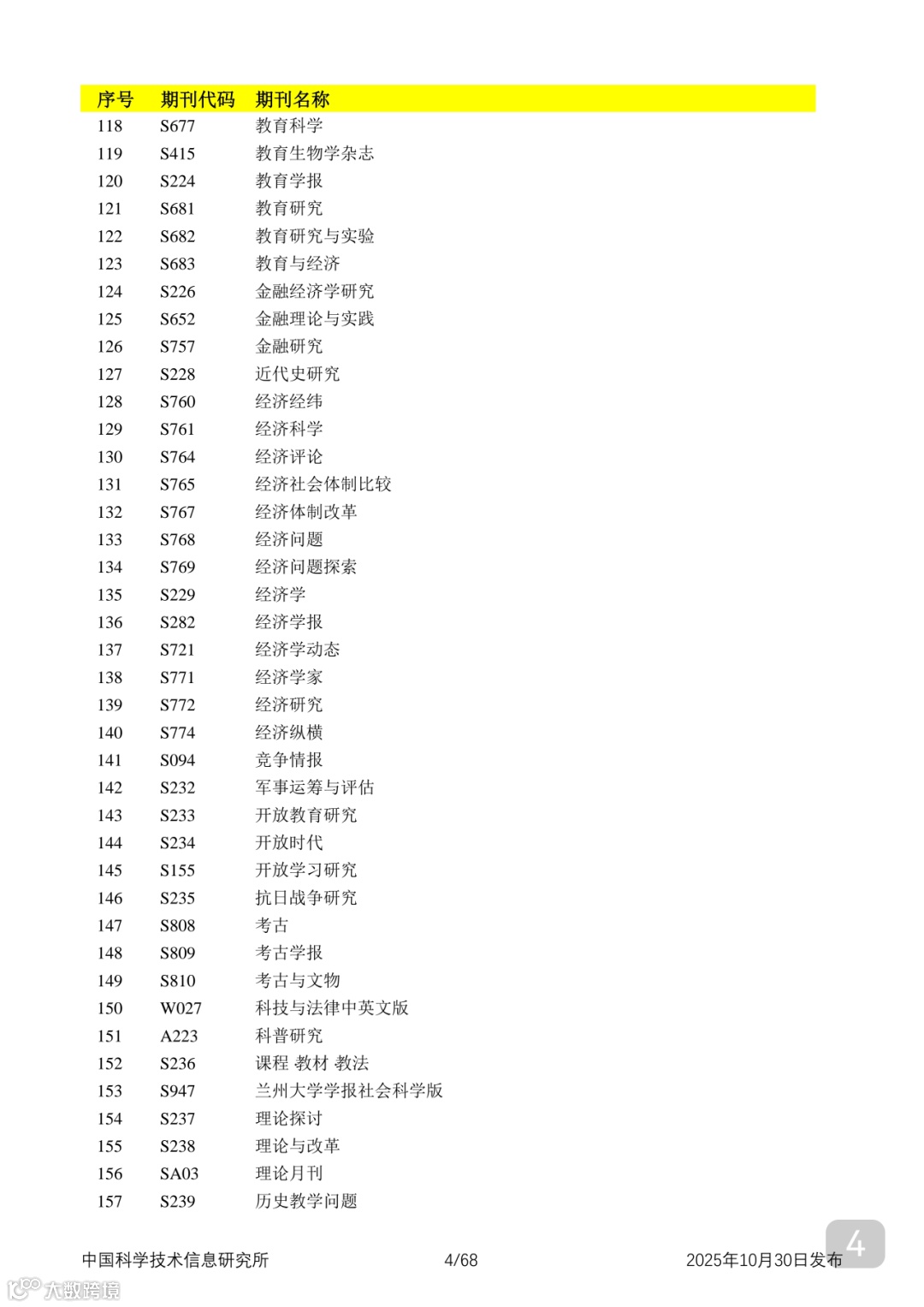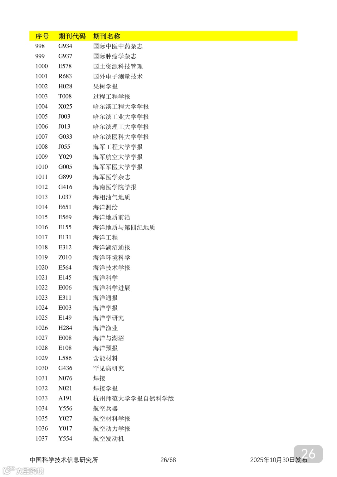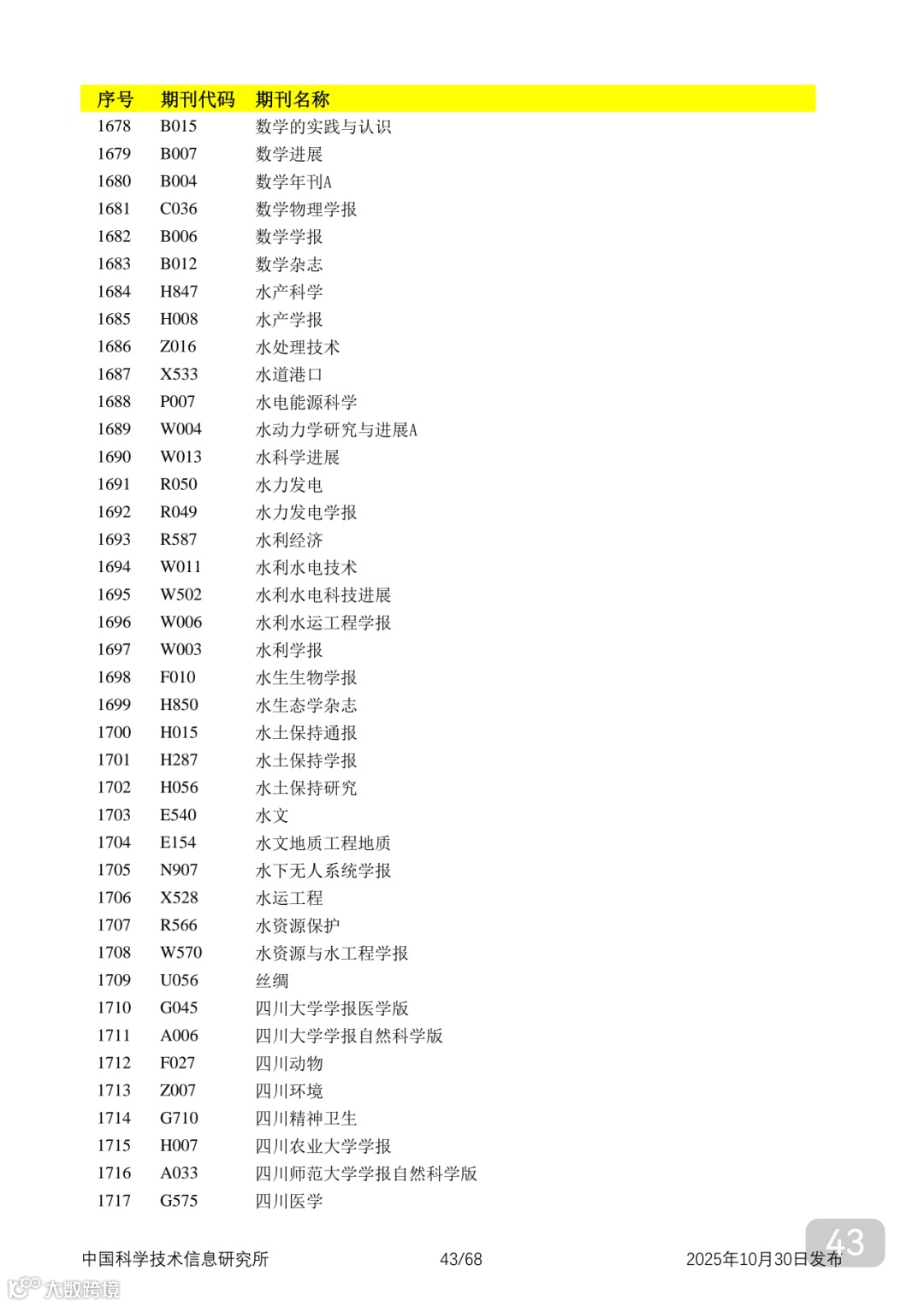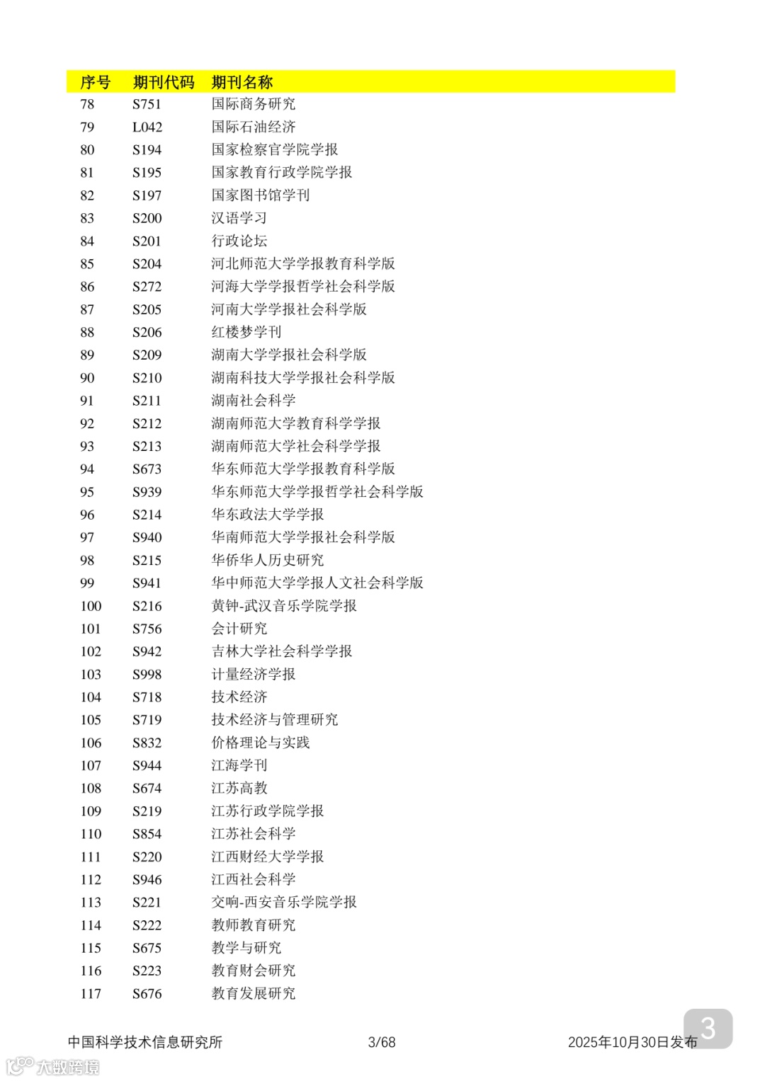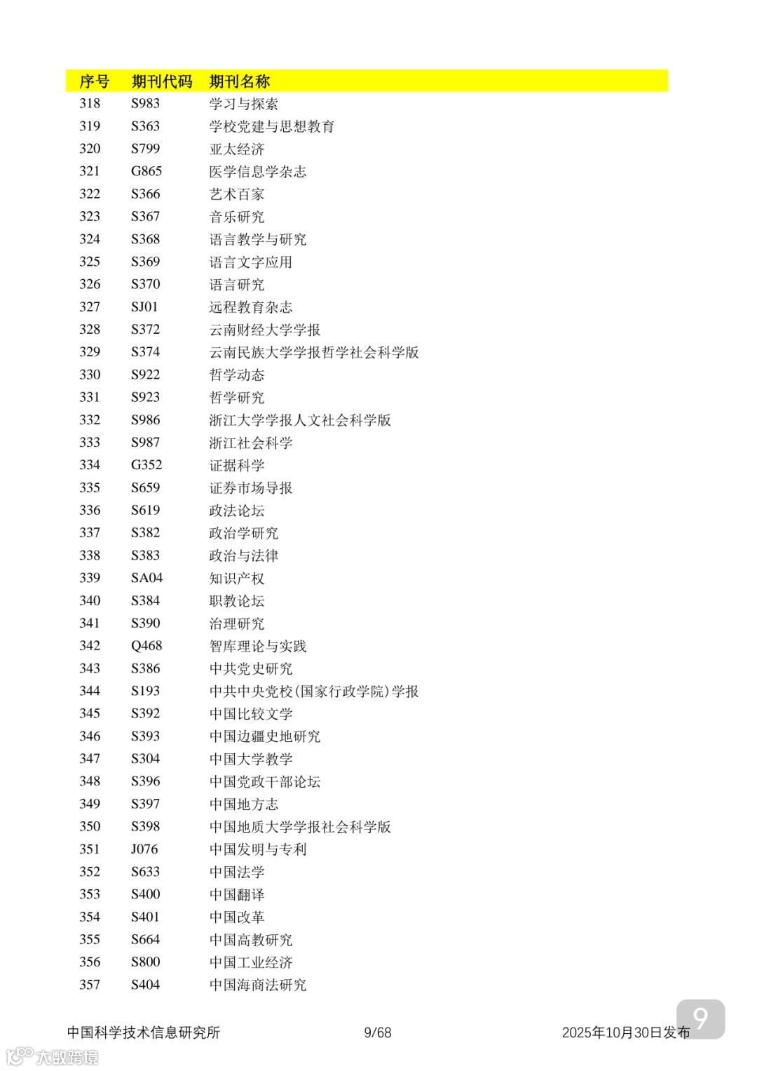 附2025年中国科技核心期刊目录,其中食品领域期刊以红线框出(人工整理,如有遗漏,敬请谅解)。