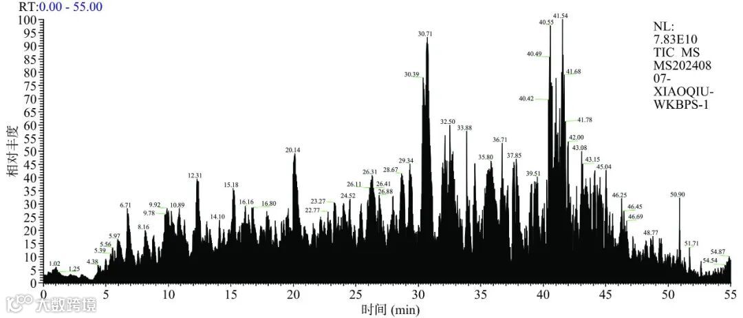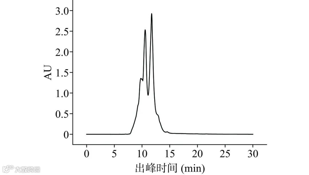WKBPs分子量分布结果如表6和图4所示,Mw<3000 Da的肽段含量为90.57%,Mw<1000 Da的肽段含量为72.48%,1000~3000 Da的肽段含量为18.09%,Mw>3000 Da的肽段含量为9.44%,说明WKBPs分子量主要集中在3000 Da以下,研究表明,多肽分子质量越小越容易穿过屏障,发挥其降血脂活性,这一结果与杨晓月的研究一致,推测这部分肽段是降血脂的主要片段。