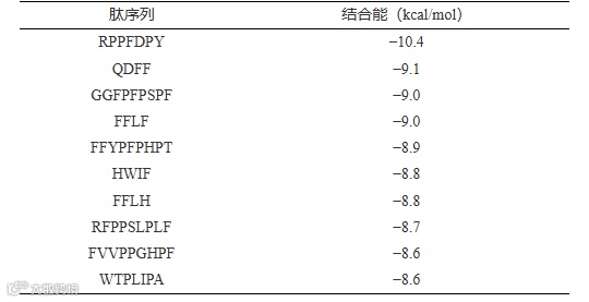表 7 WKBPs与胰脂肪酶结合能最高的十个肽段