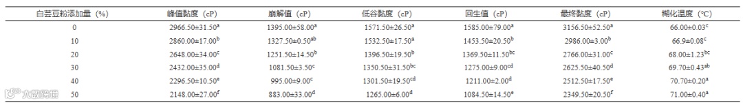 Table 2 Effect of the addition amount of white kidney bean powder on the gelatinization characteristics of the compound powder