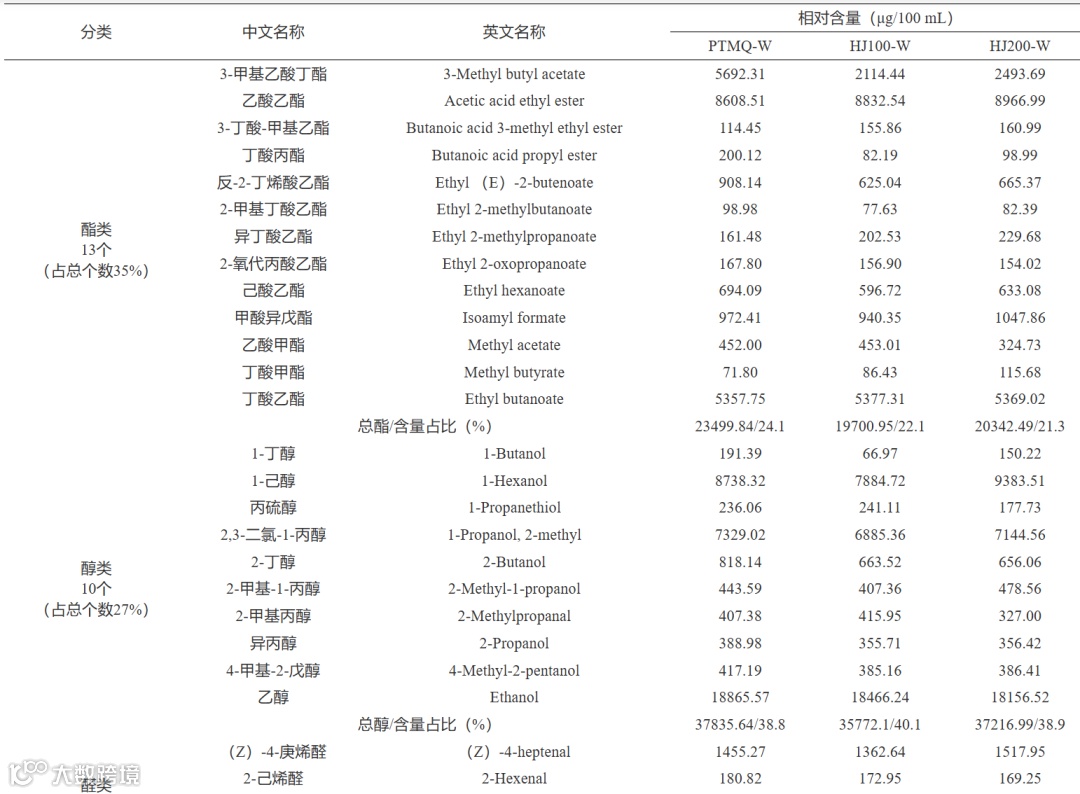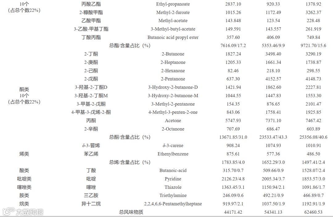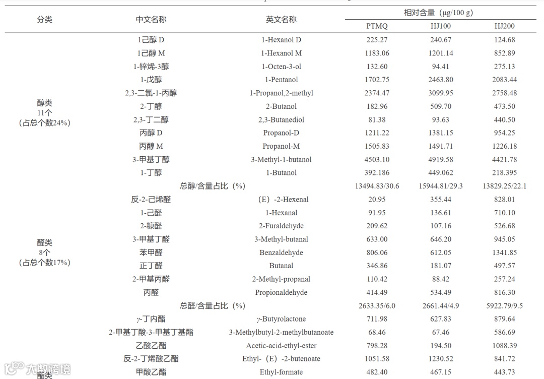 Table 2. Flavor compounds of different wheat Qu brewed Huangjiu
