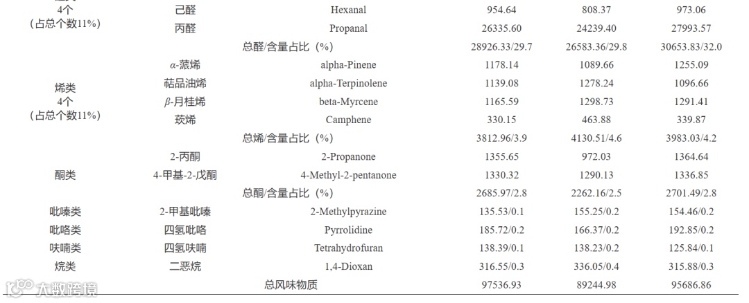 注:挥发性风味物质后缀D和M分别表示二聚体和单体。