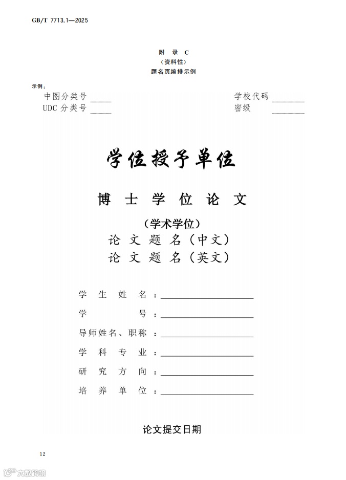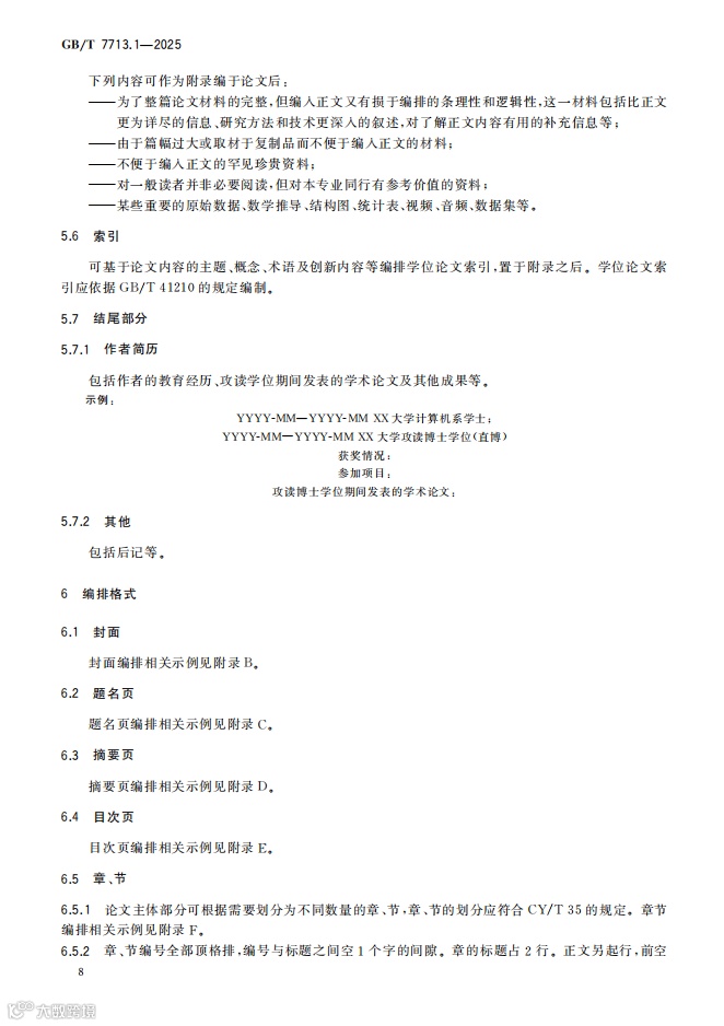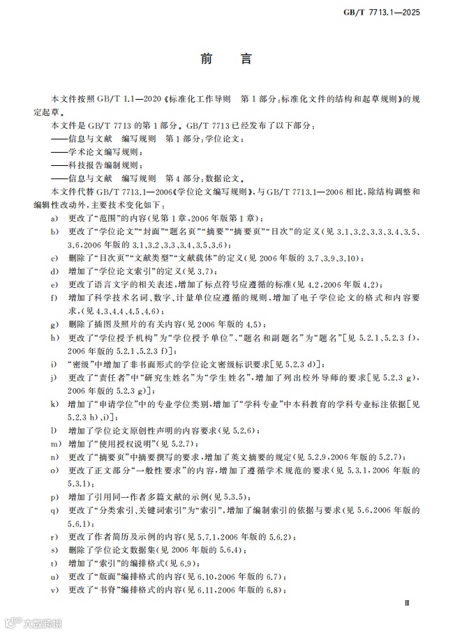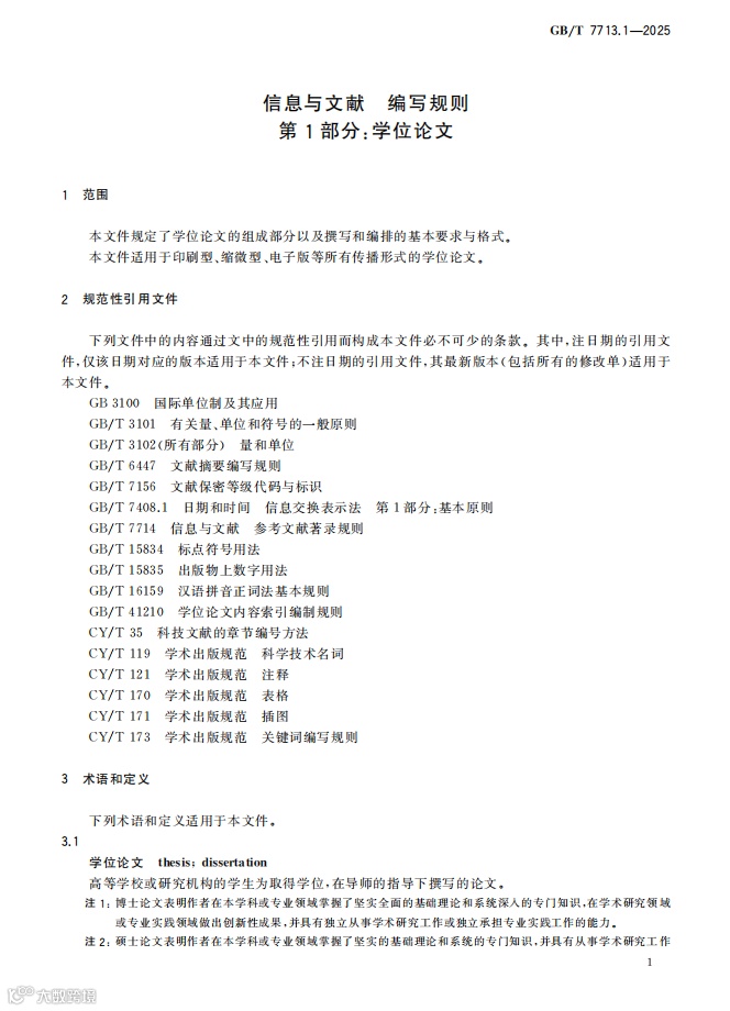 《信息与文献 编写规则 第1部分:学位论文》(GB/T 7713.1—2025)将于2026年2月1日起执行。