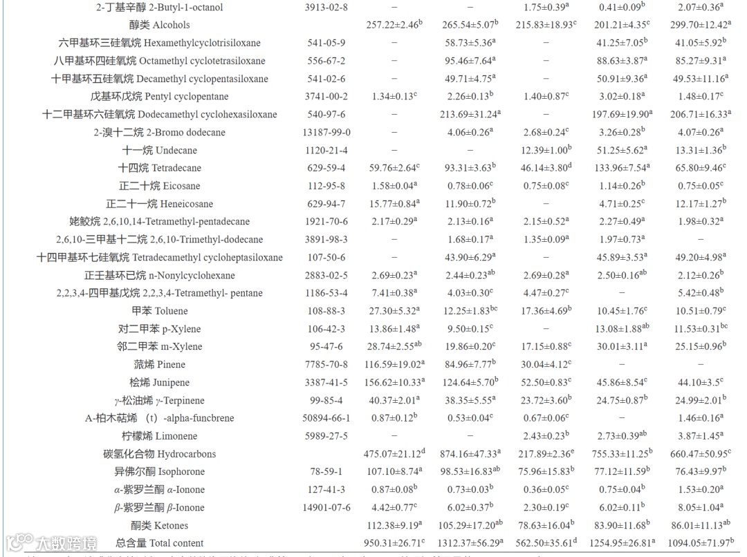 Table 1. The aroma components of different varieties of white peony tea