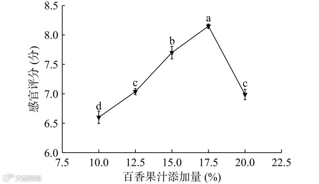 图 1 百香果汁添加量对复合果冻感官品质的影响