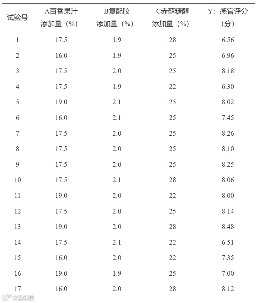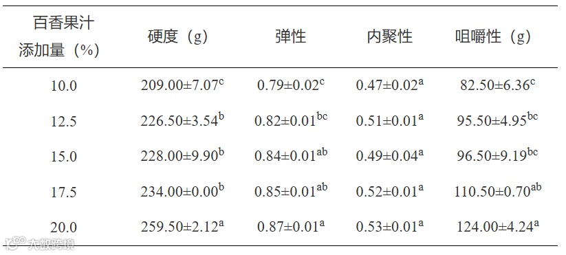Table 4 Effect of added amount of passion fruit juice on texture properties of compound jelly