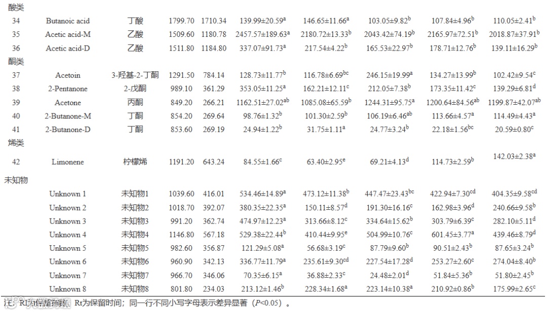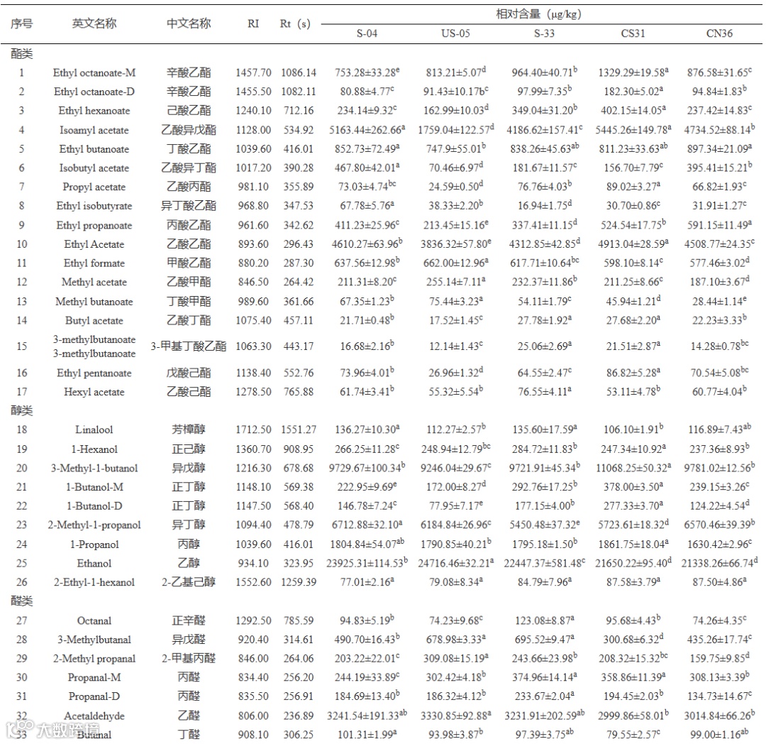 Table 2. Identification of volatile compounds in passion beer brewed by different yeasts by GC-IMS