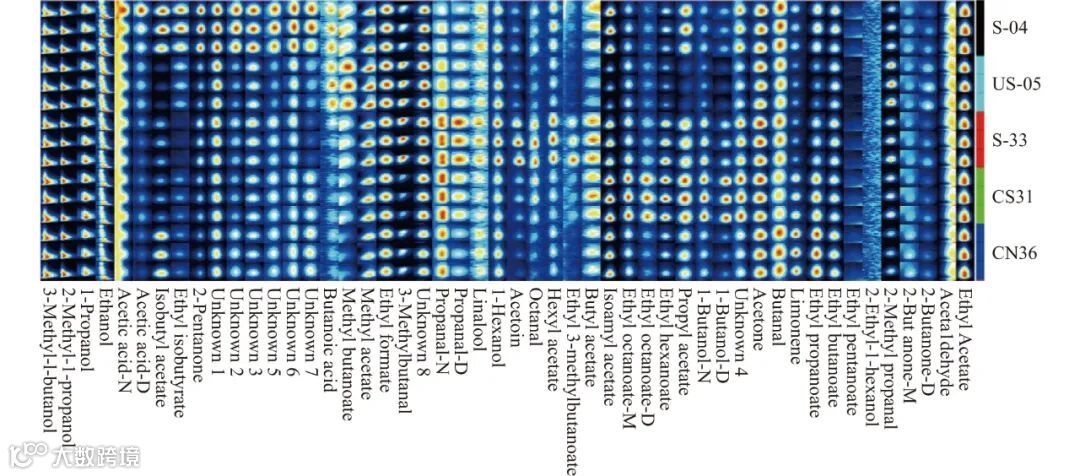 Figure 3. Fingerprint of volatile compounds in passion beer brewed by different yeasts