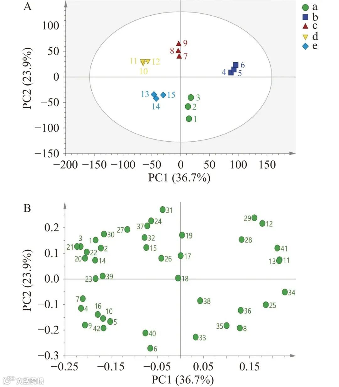 图 4 不同酵母酿造百香果果啤主成分分析图