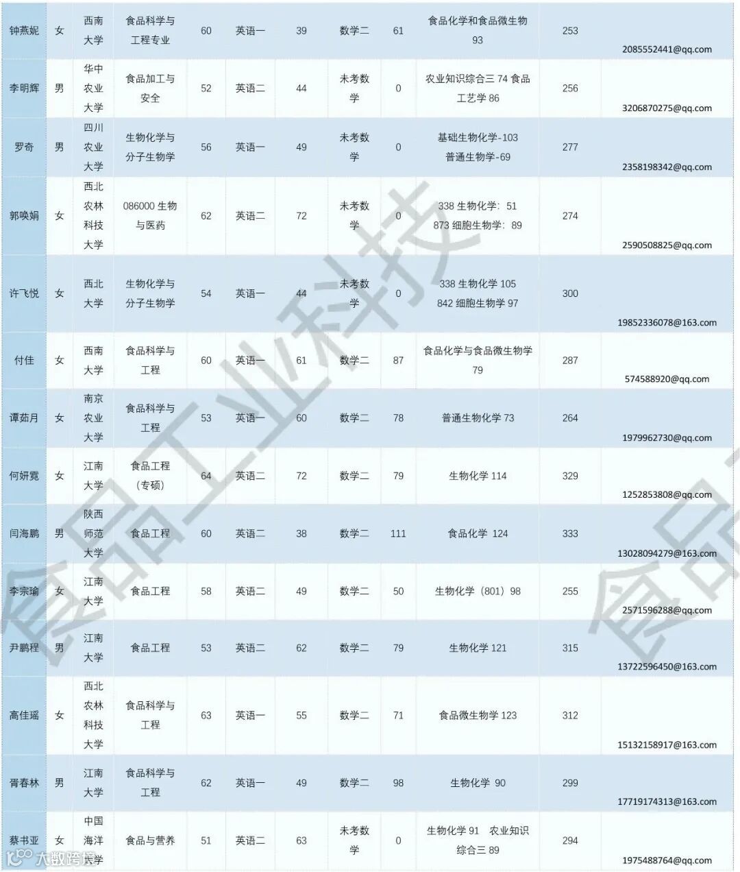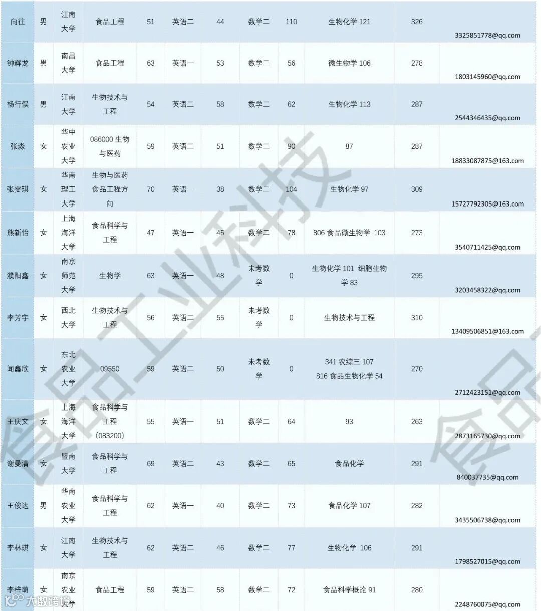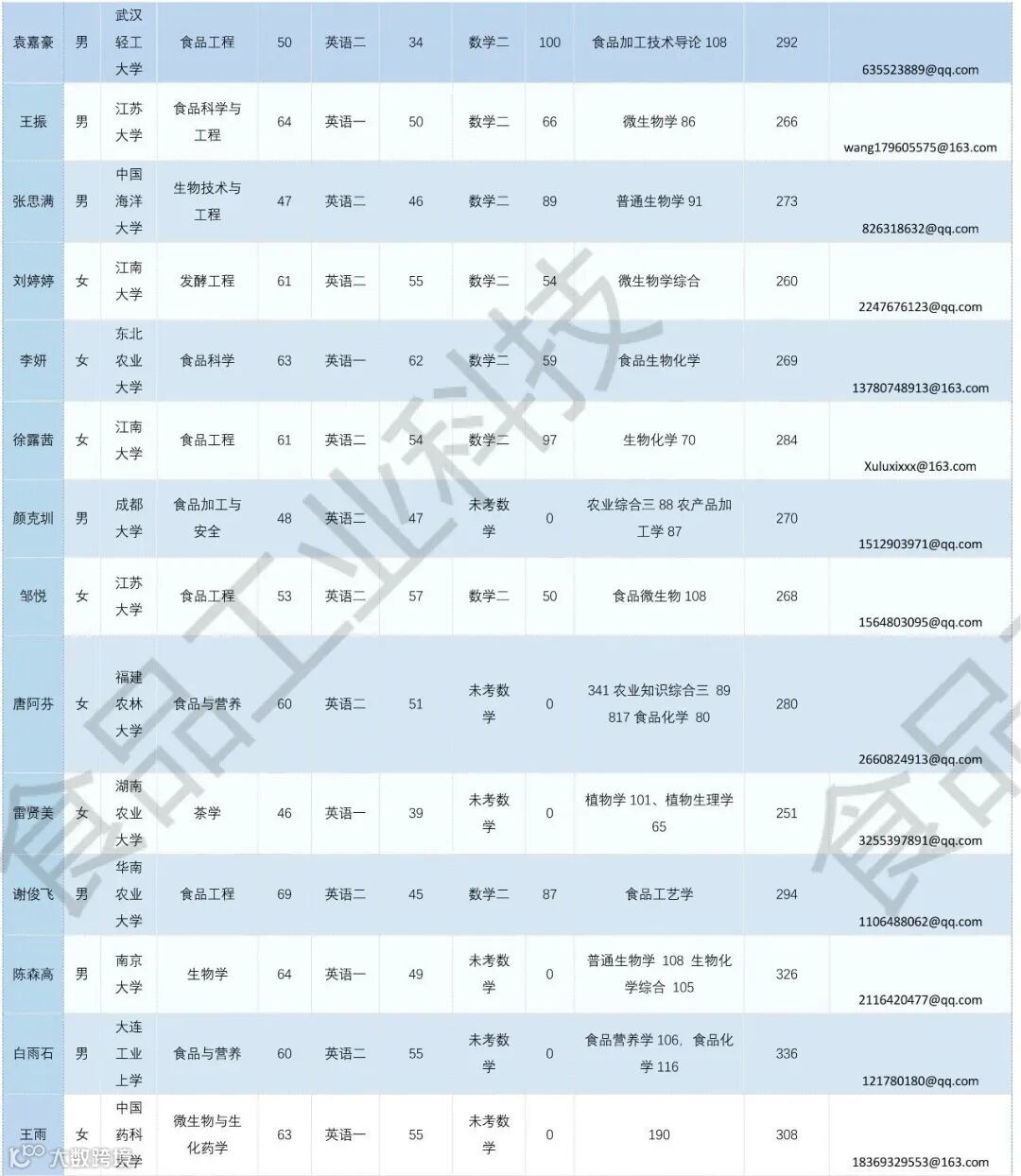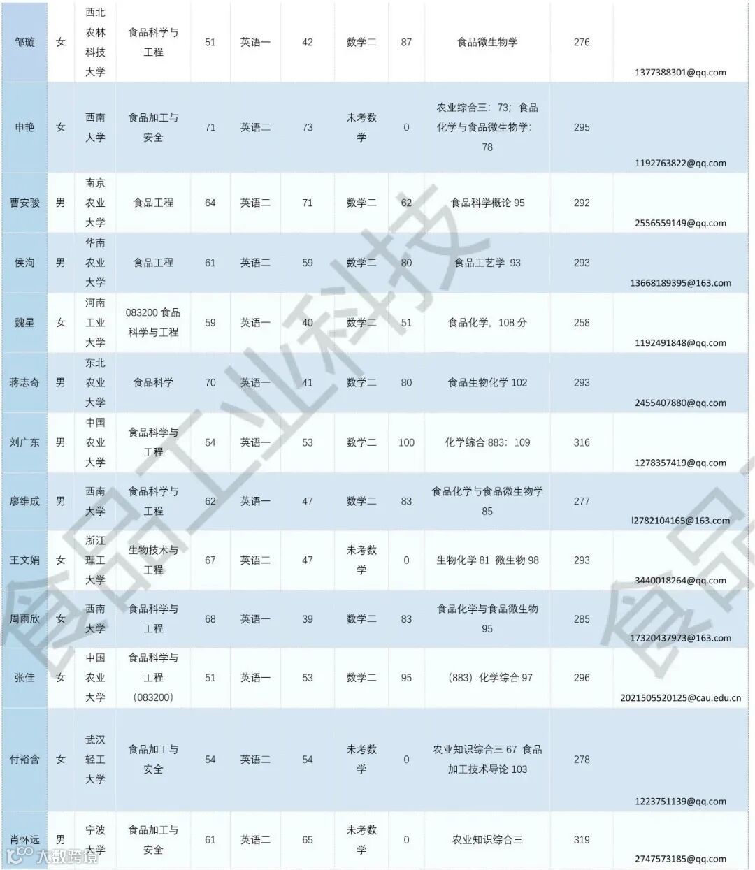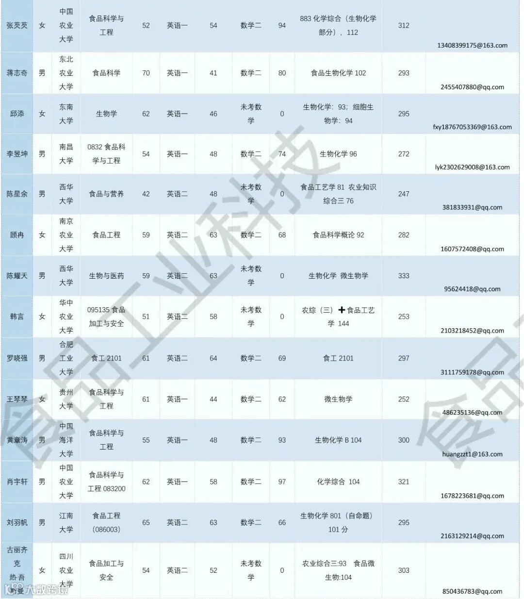 《食品工业科技》公益助力学生调剂,图片显示度不佳,点击文末“阅读原文”或登录《食品工业科技》官网www.spgykj.com-考研调剂版块下载excel版学生信息。图中隐去了学生的部分信息及电话,如有需要,请联系我们: