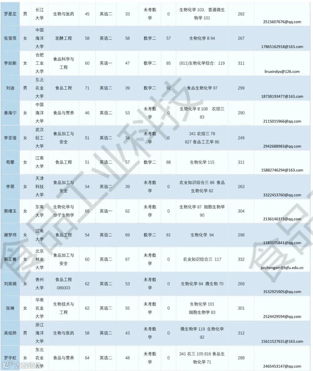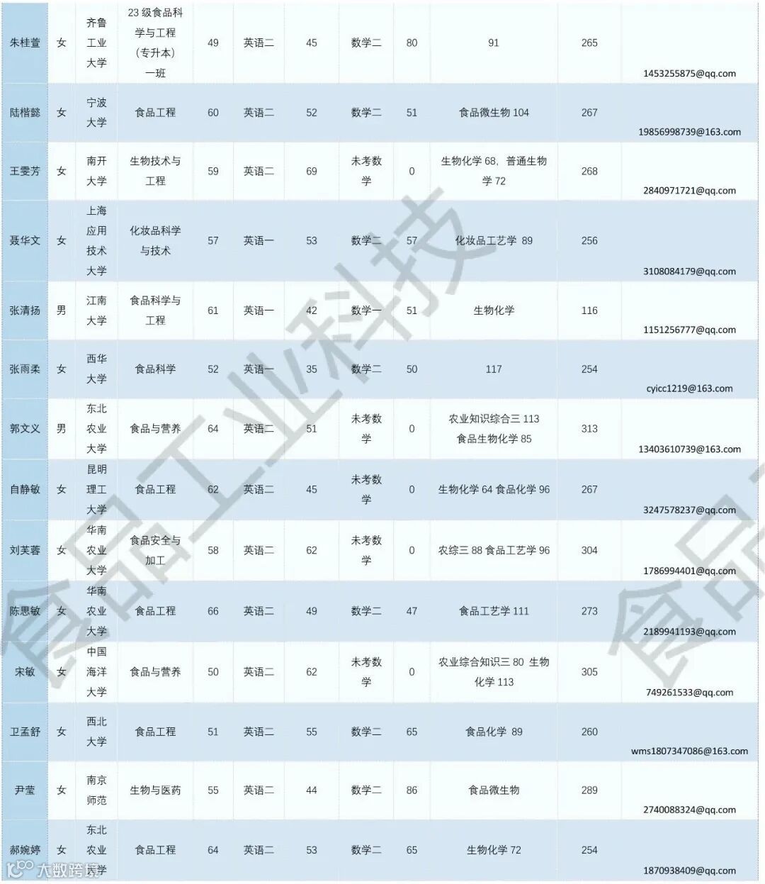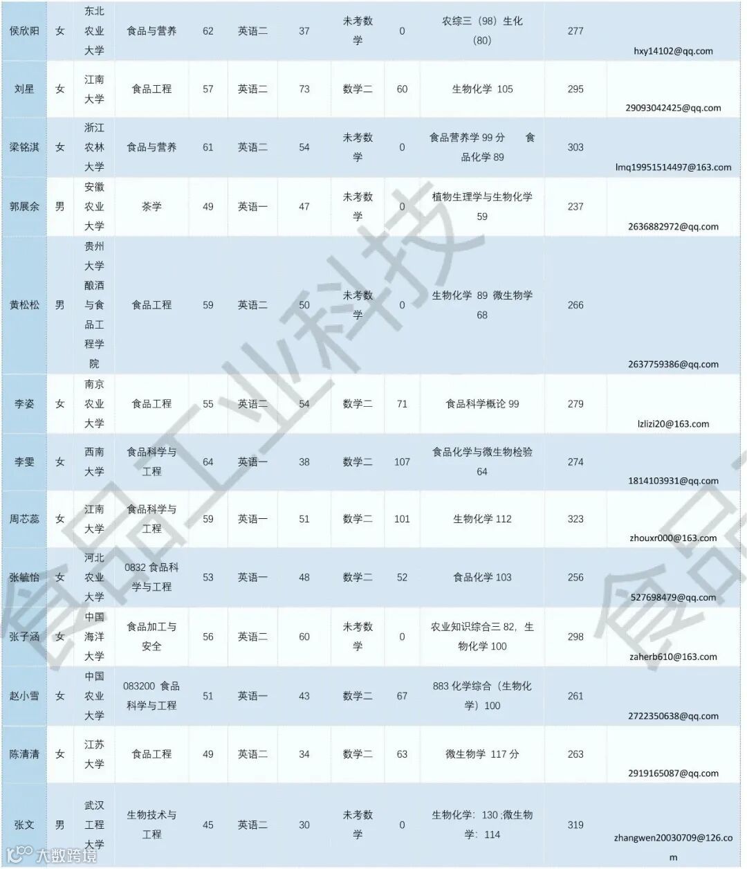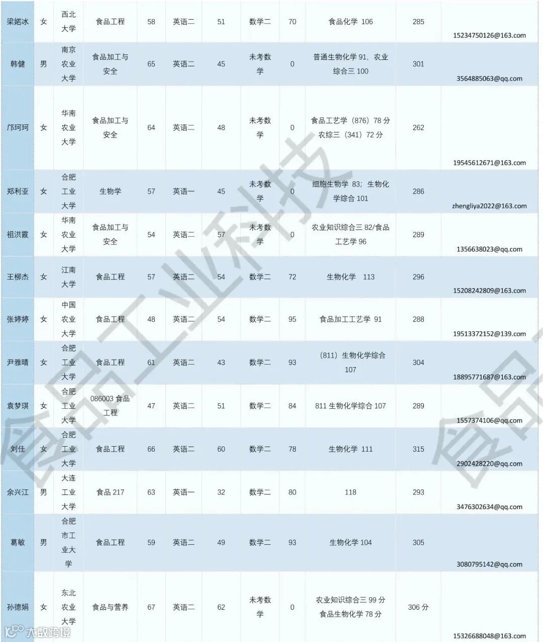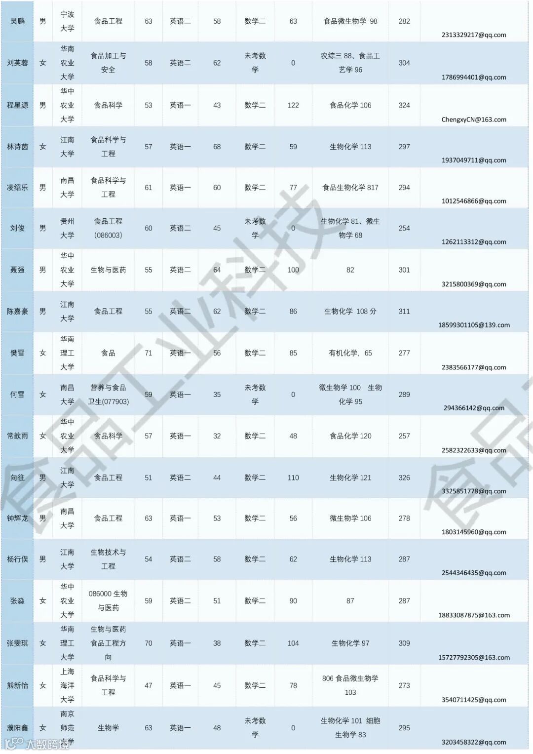 《食品工业科技》公益助力学生调剂,图片显示度不佳,点击文末“阅读原文”或登录《食品工业科技》官网www.spgykj.com-考研调剂版块下载excel版学生信息。图中隐去了学生的部分信息及电话,如有需要,请联系我们: