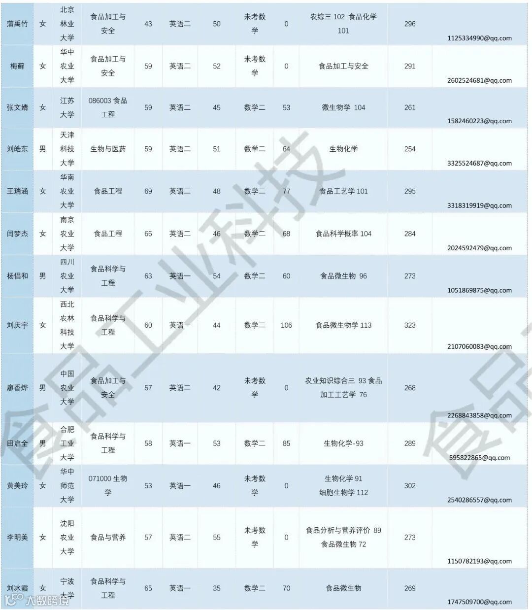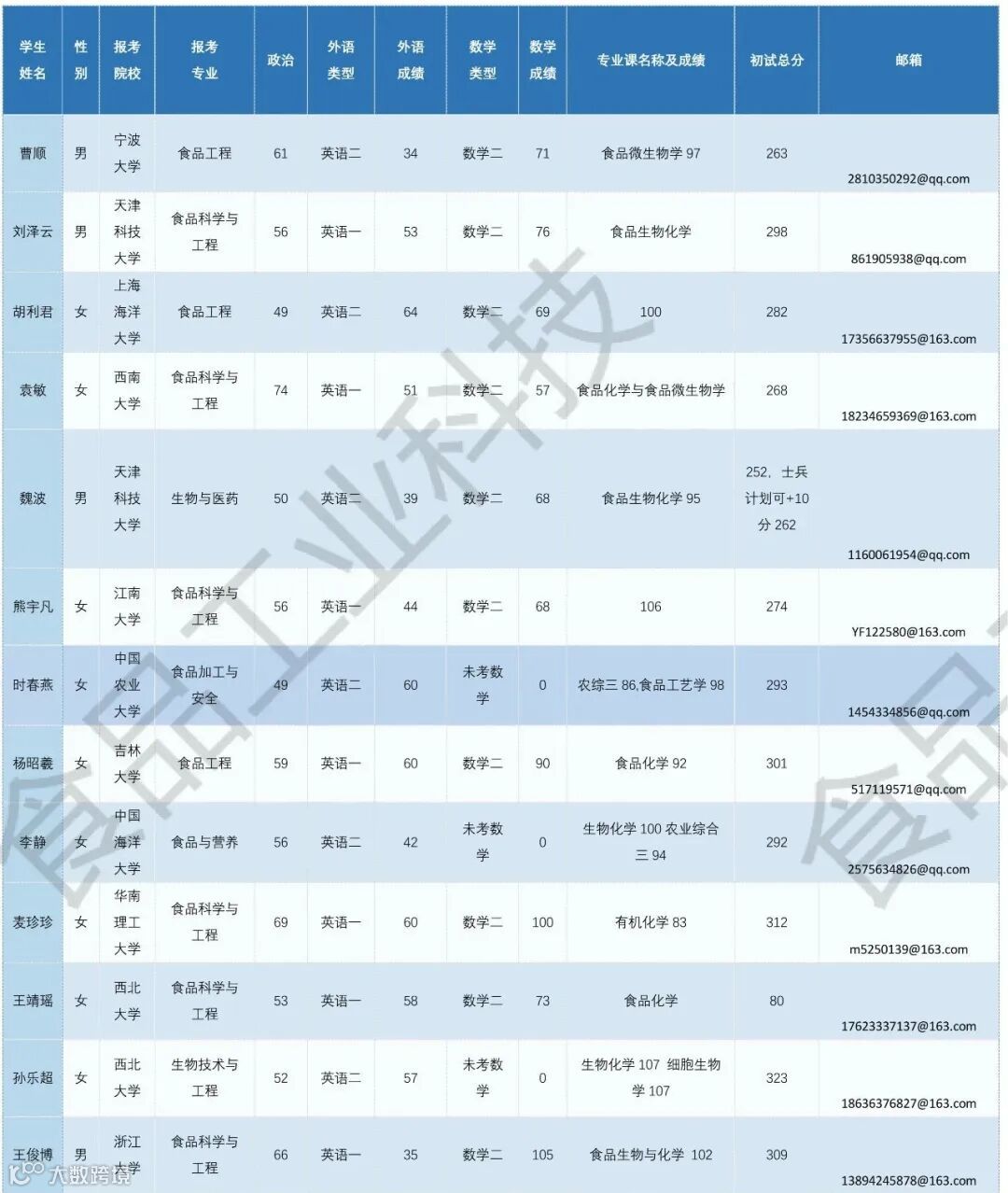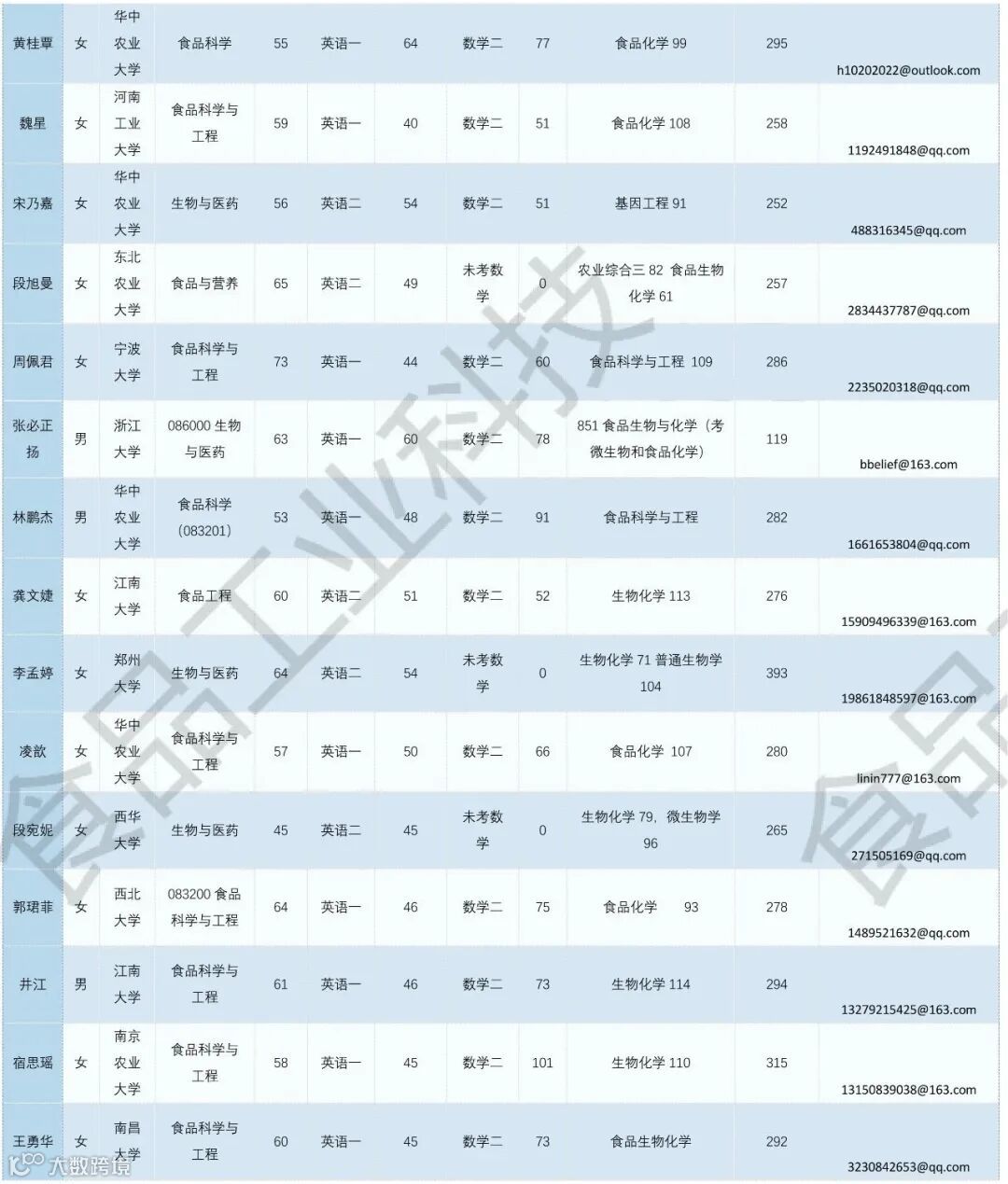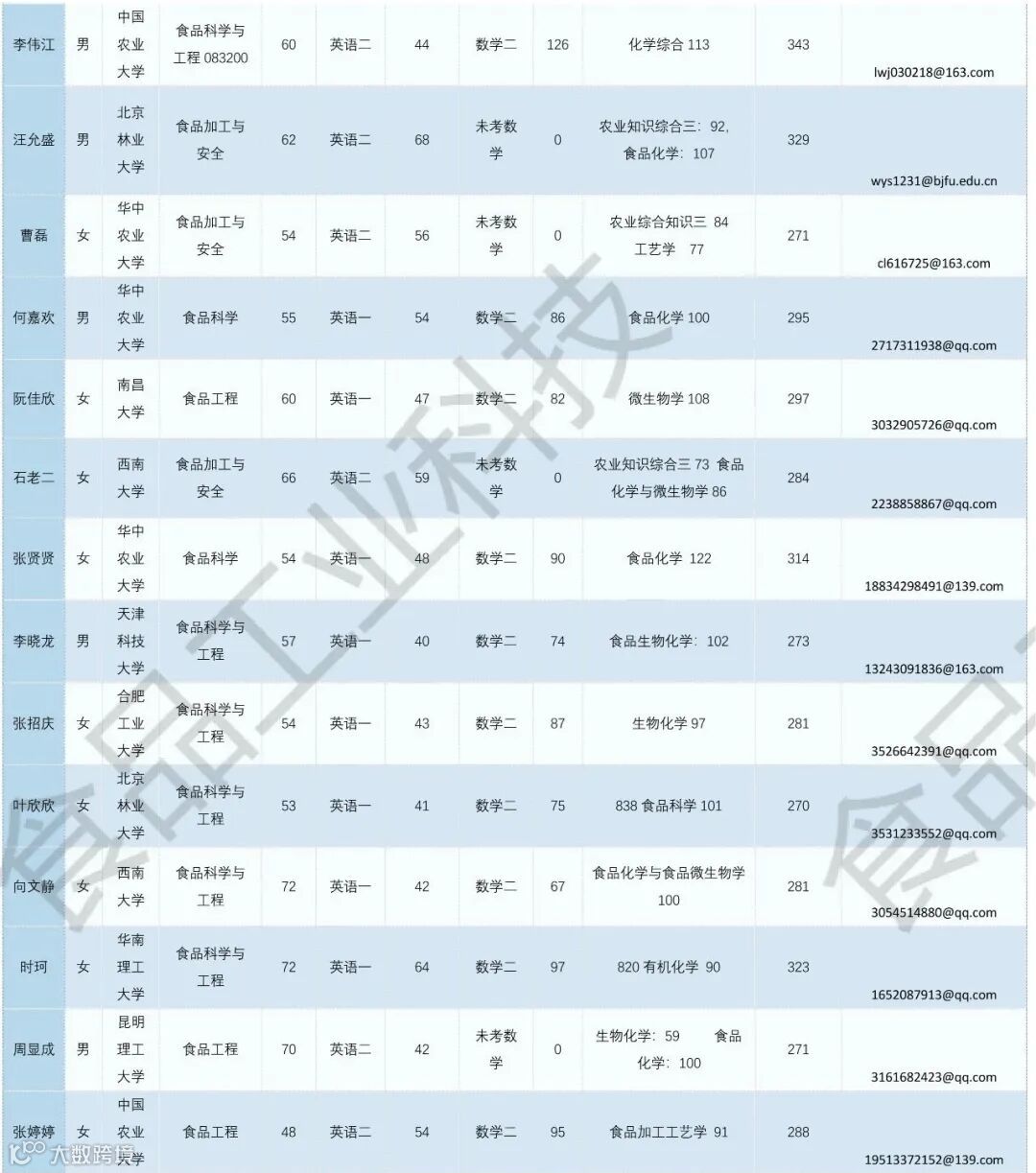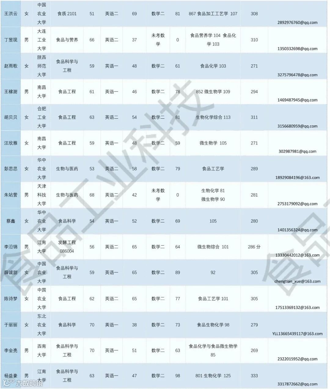 《食品工业科技》公益助力学生调剂,图片显示度不佳,点击文末“阅读原文”或登录《食品工业科技》官网www.spgykj.com-考研调剂版块下载excel版学生信息。图中隐去了学生的部分信息及电话,如有需要,请联系我们: