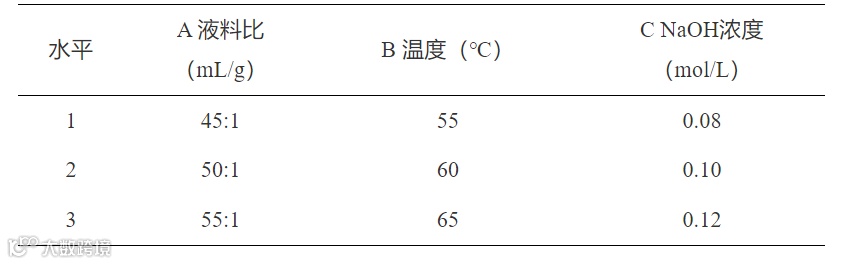 表 1 碎米荠蛋白提取正交试验因素水平表