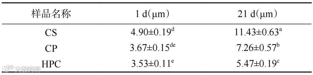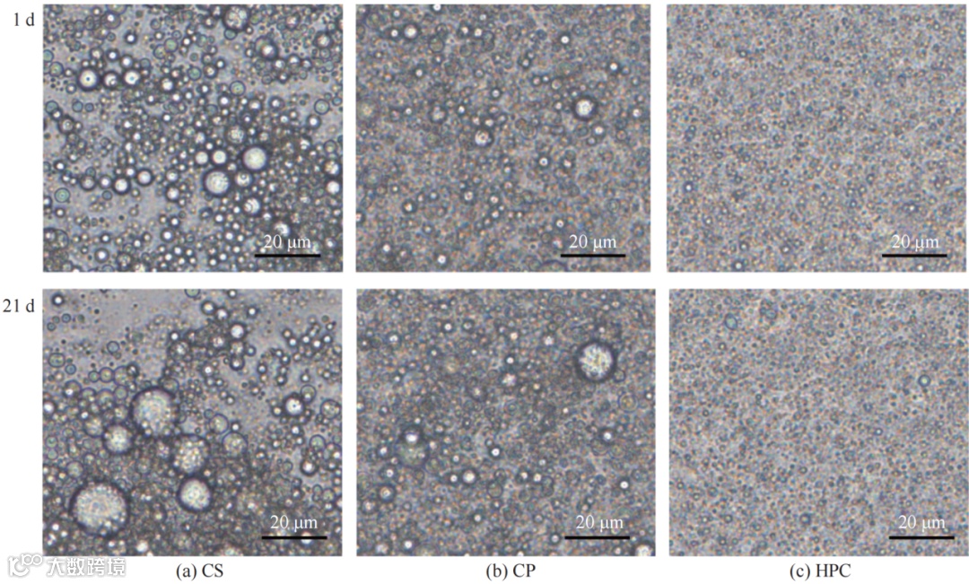 不同纤维素乳液贮藏稳定性的结果分析