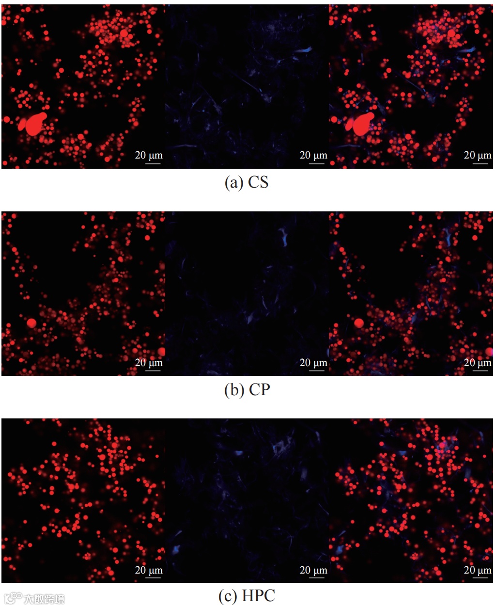 图5 不同纤维素乳液的CLSM图