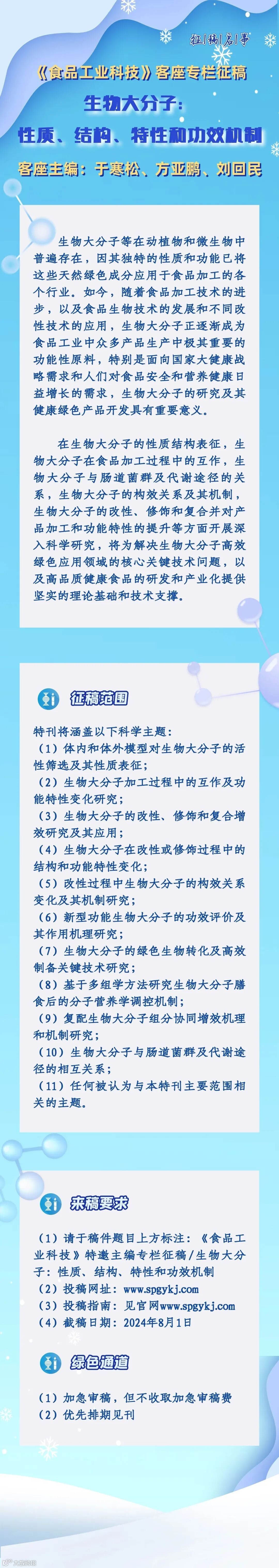 《食品工业科技》青年编委专栏征稿:组学分析技术在食品品质研究中的应用 ☚