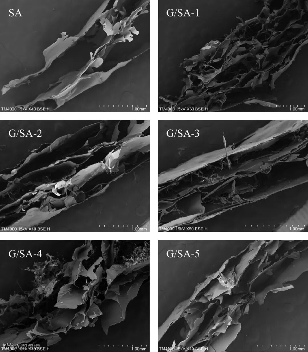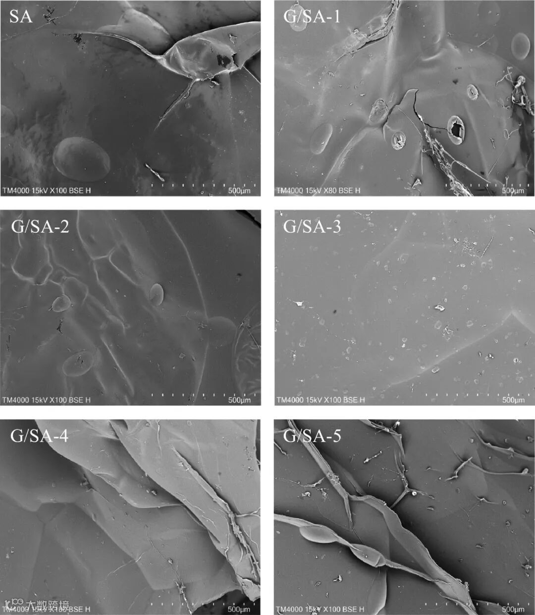 2.2 不同比例G/SA水凝胶膜的微观形貌分析