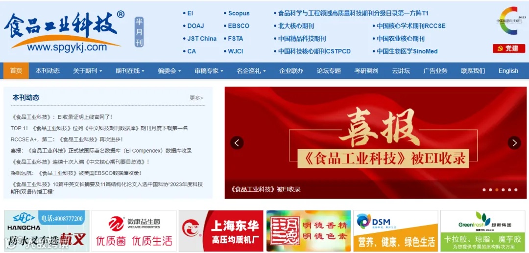 《食品工业科技》:EI收录投稿网址:www.spgykj.com截止日期:2024年7月26日录用及见刊方式:按照《食品工业科技》对论文的要求,将择优在《食品工业科技》正刊上发表注:稿件题目上方注明“Food Junction:2024第二届食品科学家论坛及产学研交流大会会议投稿”