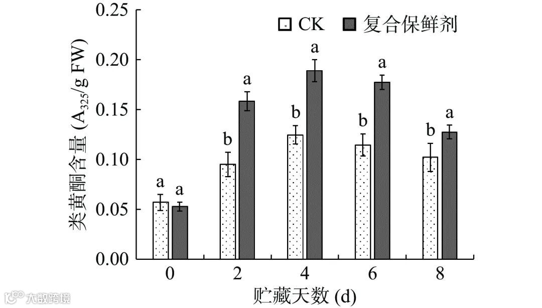 图 7 复合保鲜剂对双孢蘑菇类黄酮含量的影响