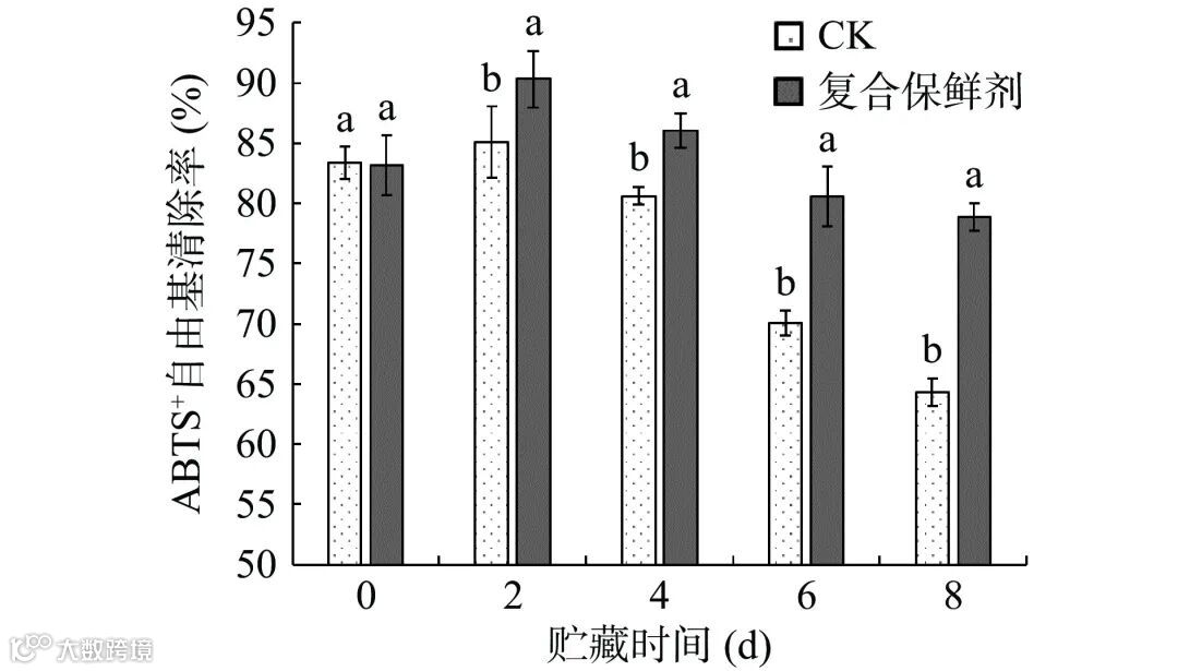 图 9 复合保鲜剂对双孢蘑菇ABTS+自由基清除率的影响
