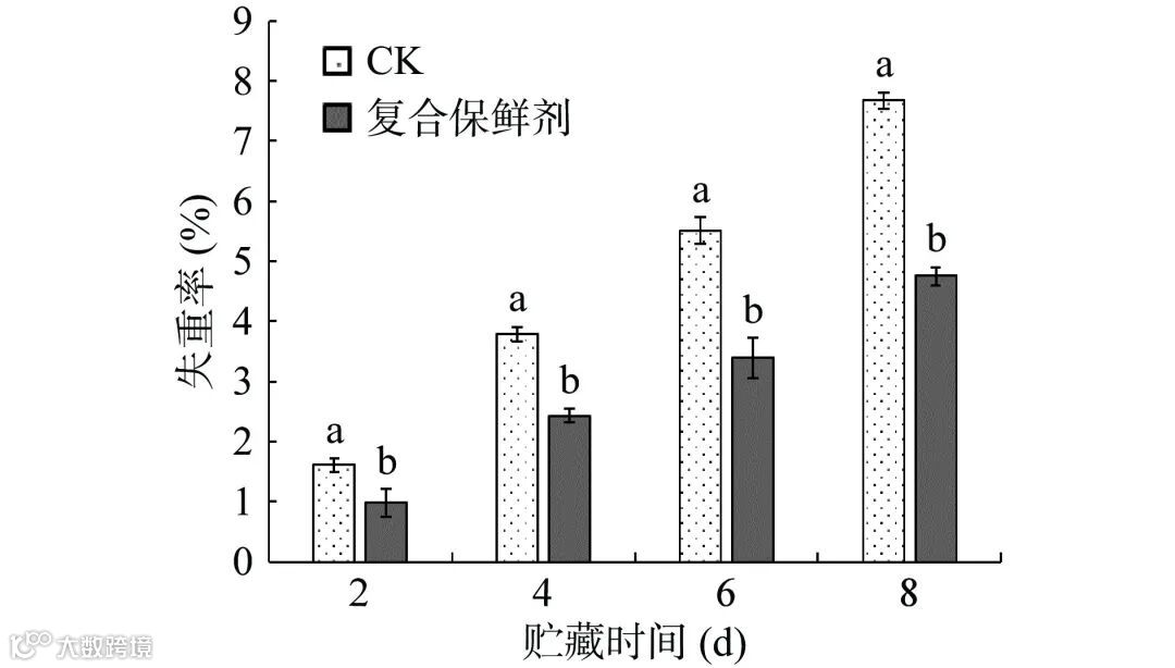 图 3 复合保鲜剂对双孢蘑菇失重率的影响