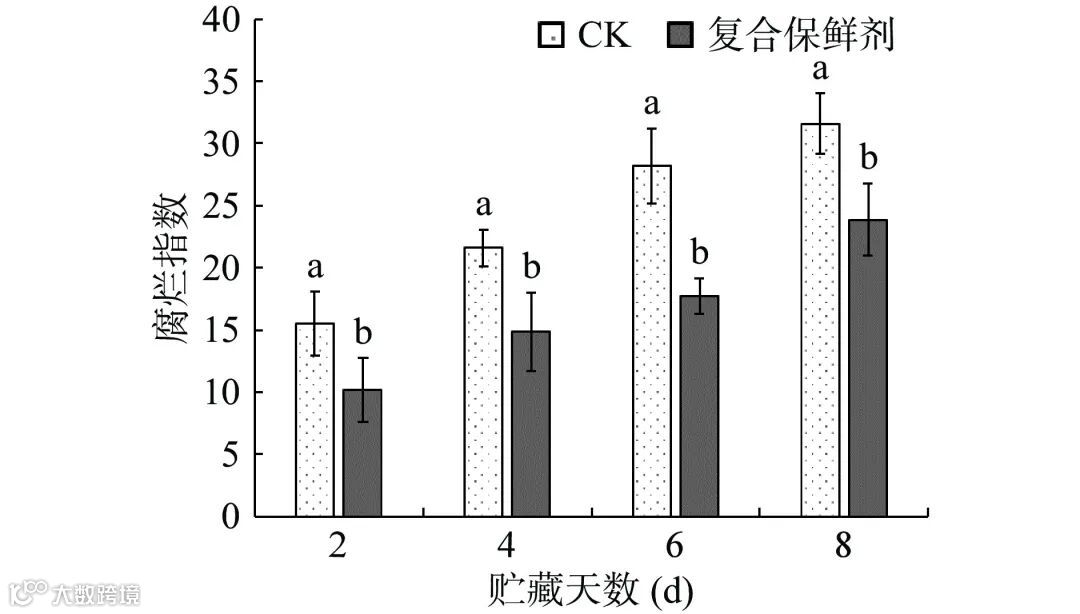图 2 复合保鲜剂对双孢蘑菇腐烂指数的影响