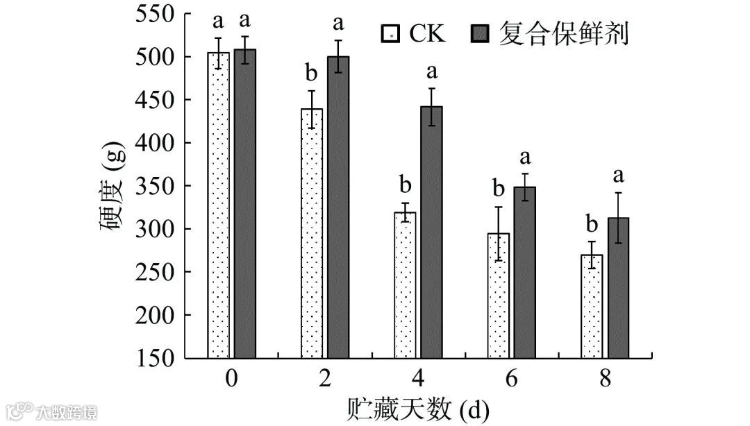 图 4 复合保鲜剂对双孢蘑菇硬度的影响