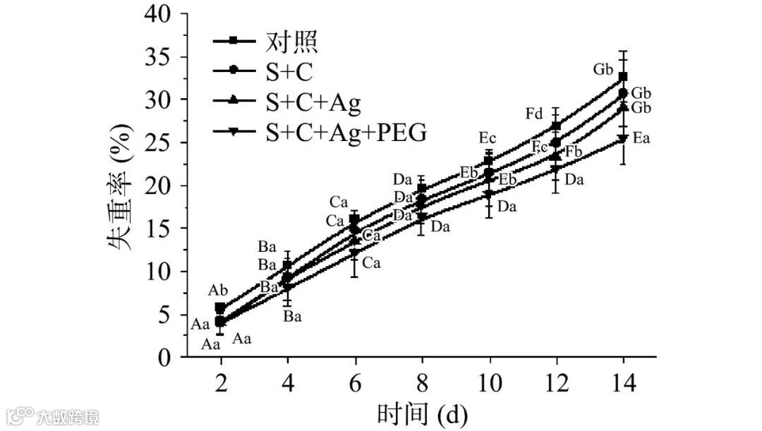 Figure 6. Effects of composite film on weight loss rate of citrus