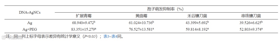 Table 2. Inhibition rates of two DNA-AgNCs on four kinds of fungal spores
