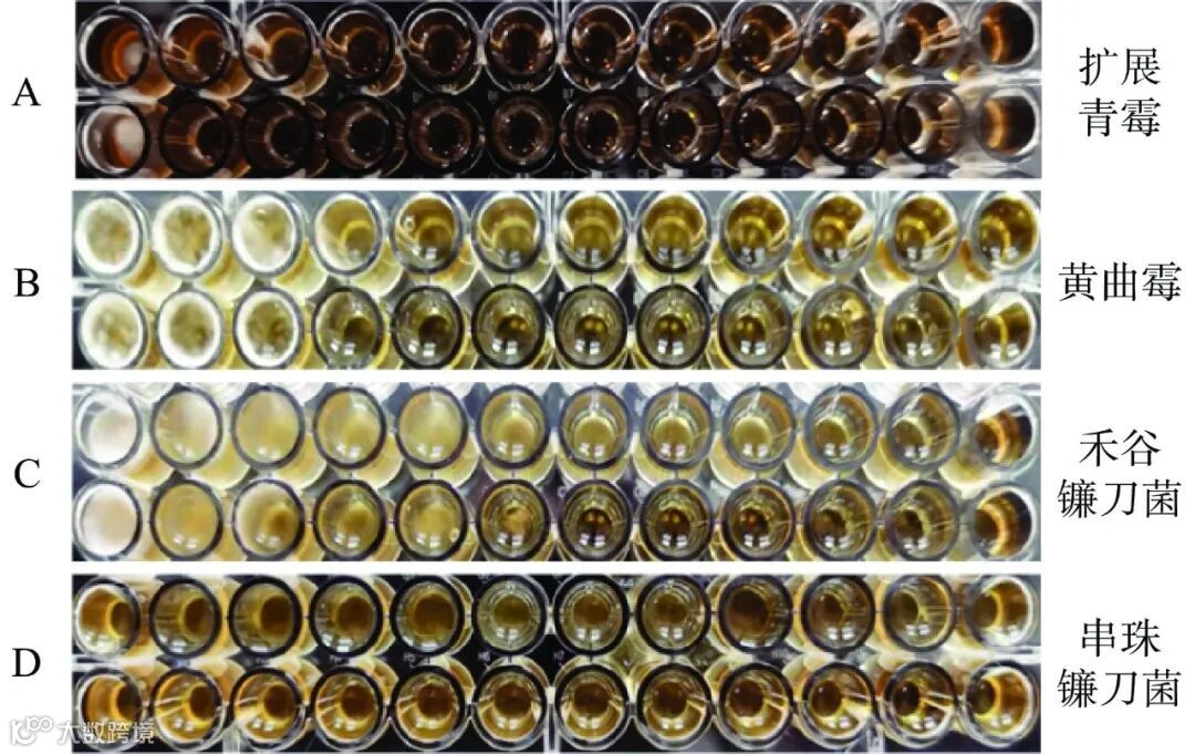 图 4 四种真菌与两种DNA-AgNCs培养3 d的图片