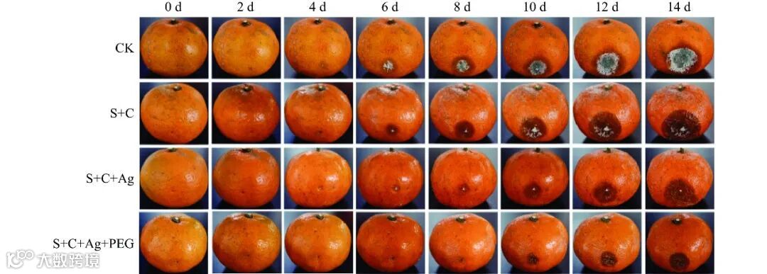 图 8 不同处理下柑橘14 d内外观变化