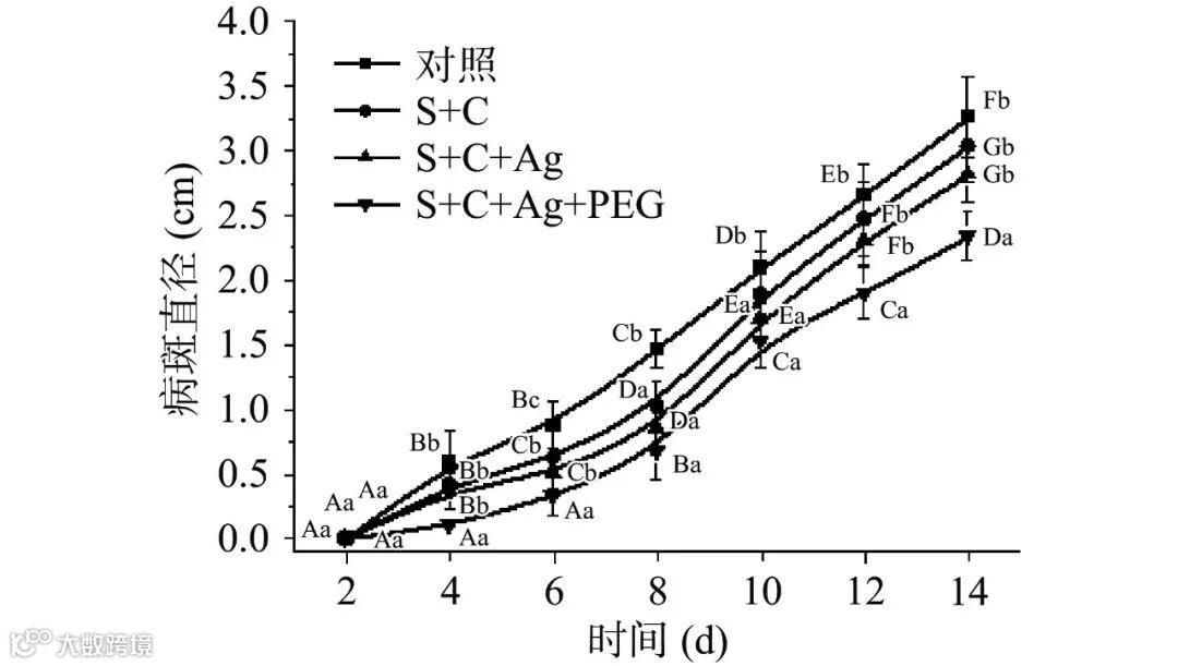 图 7 复合薄膜对柑橘病斑直径的影响
