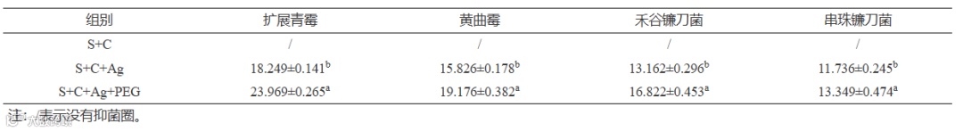表 4 三种复合薄膜的抑菌圈直径
