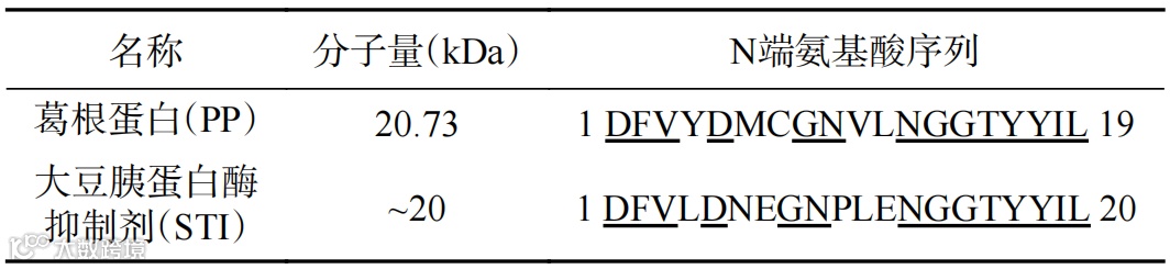 表1 葛根蛋白分子量及N端氨基酸序列比对